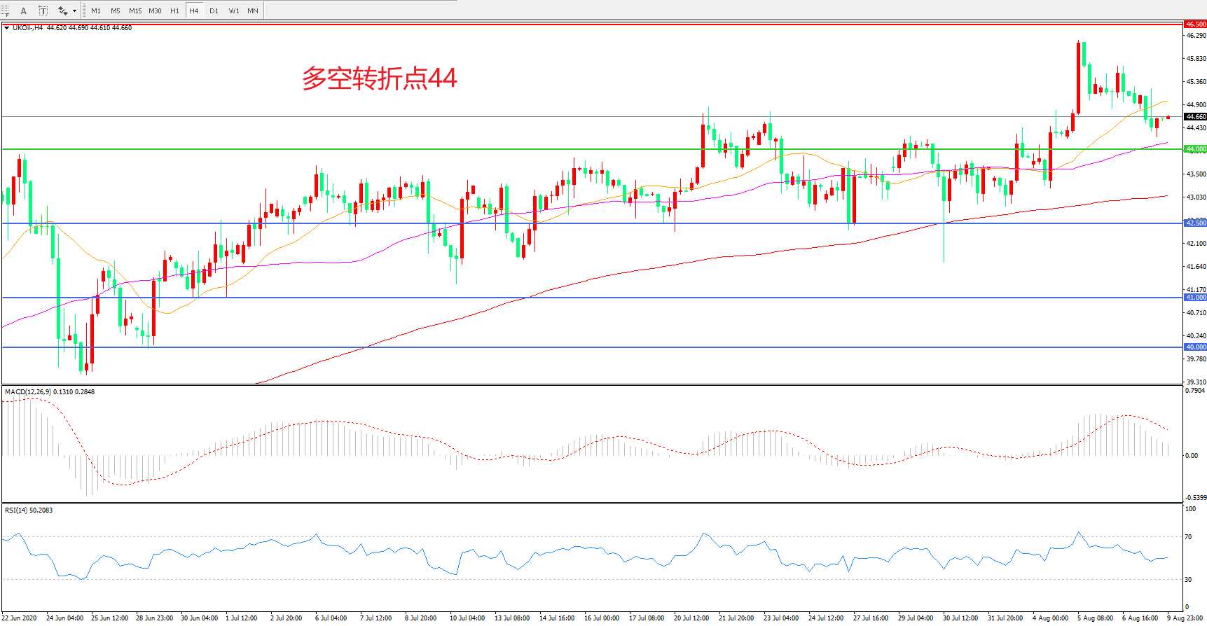 交易策略:  在44.00之上看涨,目标46.50      49.00