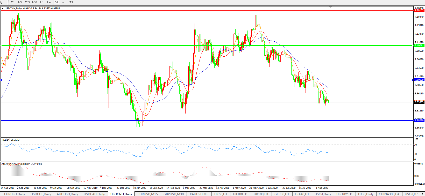 美元兑人民币USDCNH 日线图: