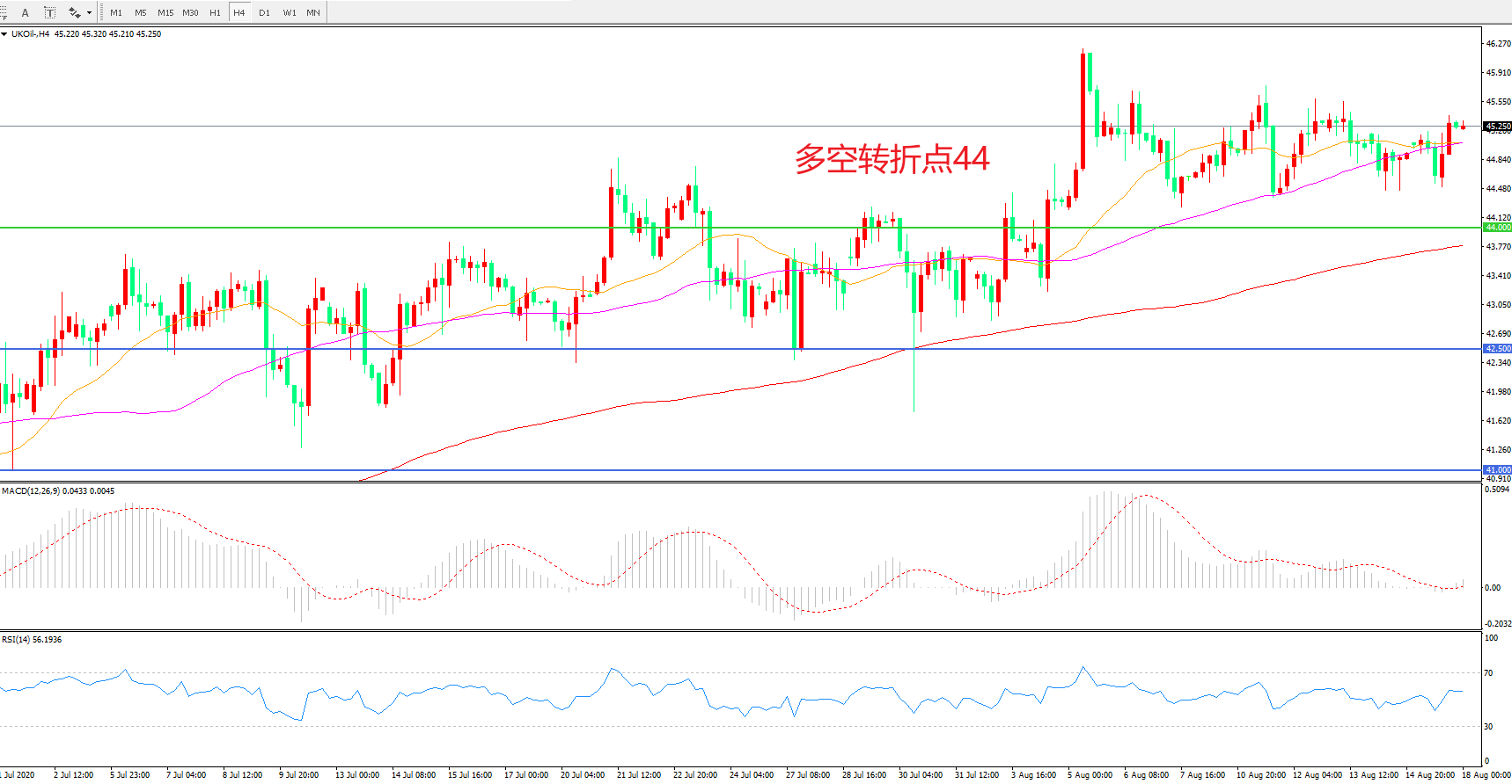 交易策略:  在44.00之上看涨,目标46.50      49.00