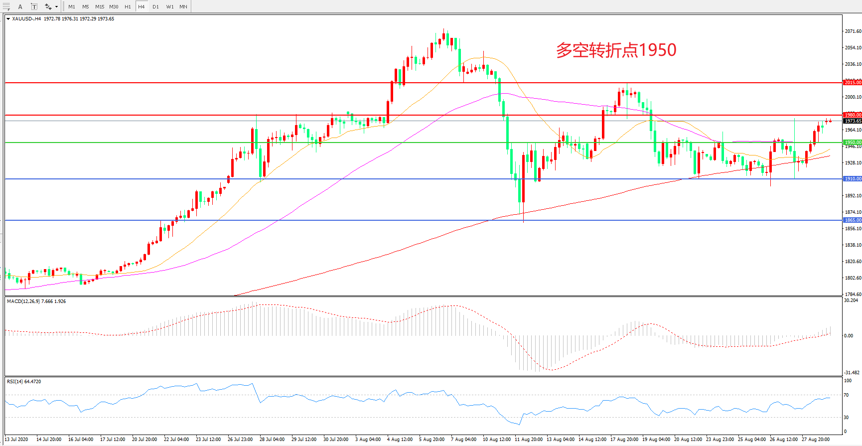 交易策略:在1950.00之上看涨,目标1980.00   2015.00