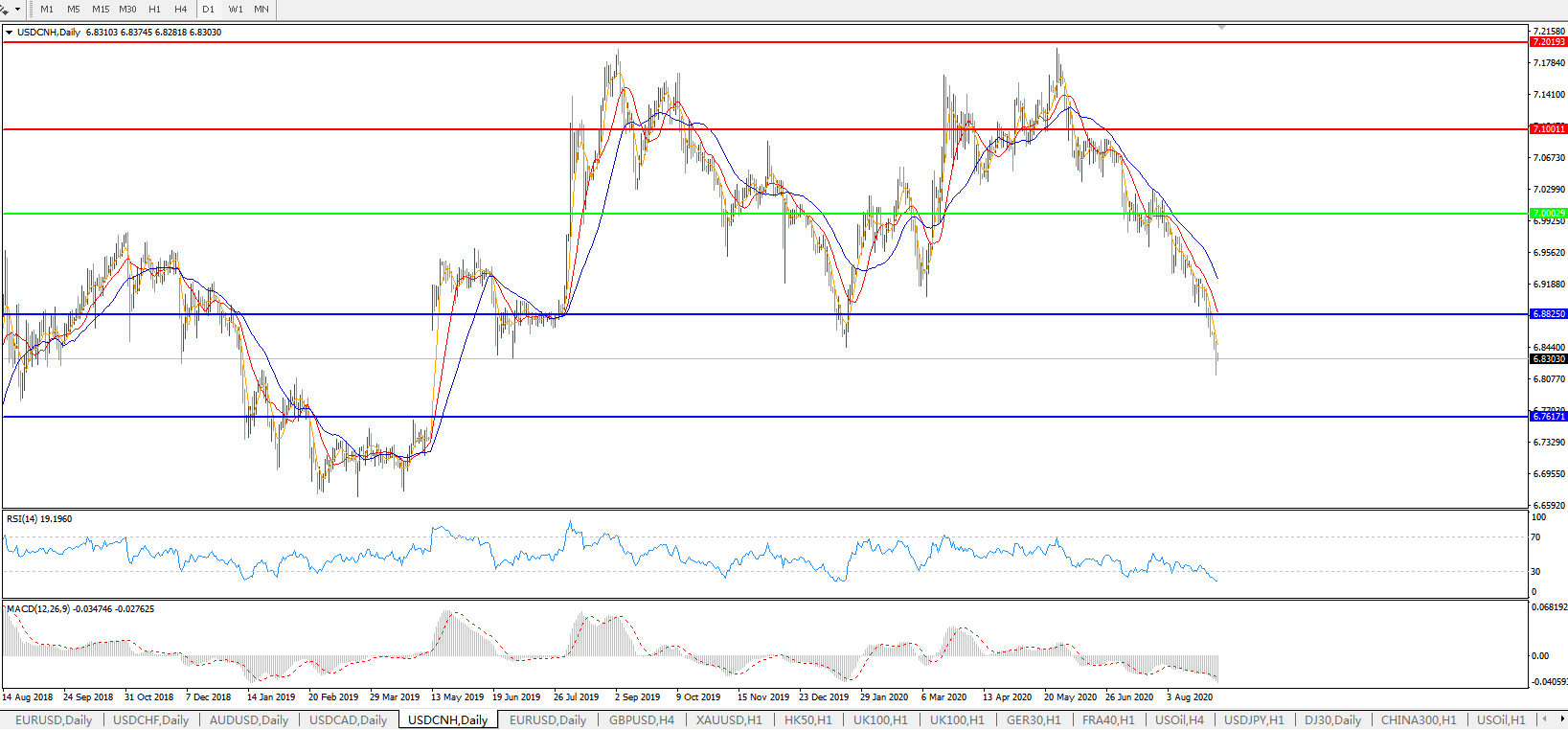 交易策略: 在7.0000之下,看跌,目标价位为6.8800,然后为6.7615。
