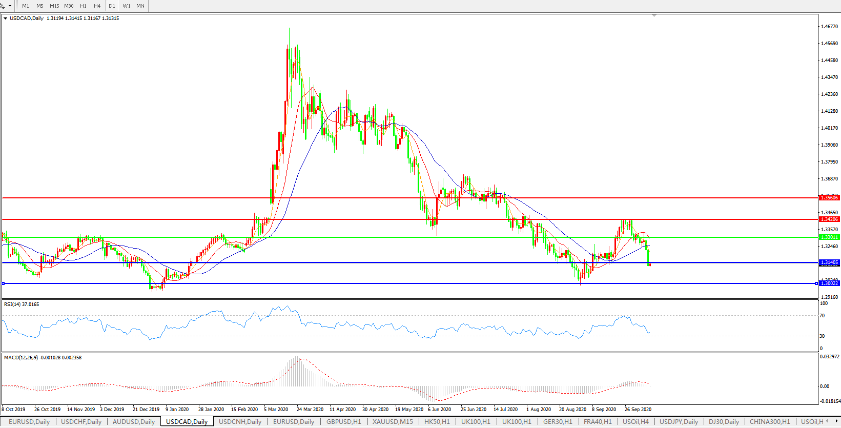 欧洲时段,美元兑加元创三周半新低至1.3136,日内美元指数保持弱势,同时国际油价依旧高位运行,加拿大9月就业人数大幅增加超预期,且加拿大9月失业率进一步跌至9%。分析师指出,随着复工复产进一步推动经济,加拿大9月就业市场录得更为良好的表现。报告中失业率低于预期,全职和兼职就业人数均超预期,此外劳动参与率也超预期。该数据表明加拿大就业市场仍然处于稳健的复苏中。