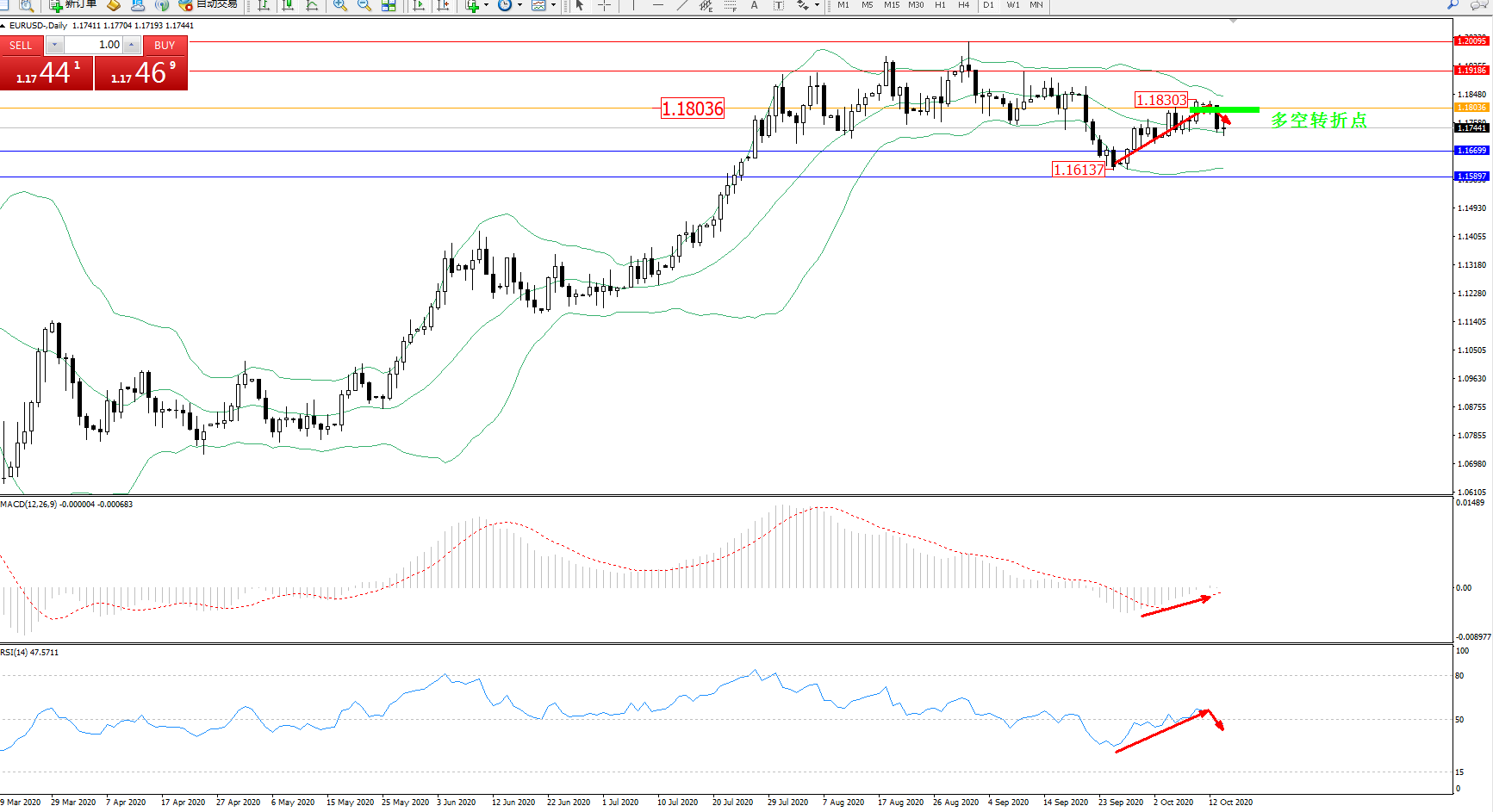 交易策略:1.18036下方看跌,目标1.16699、1.15897