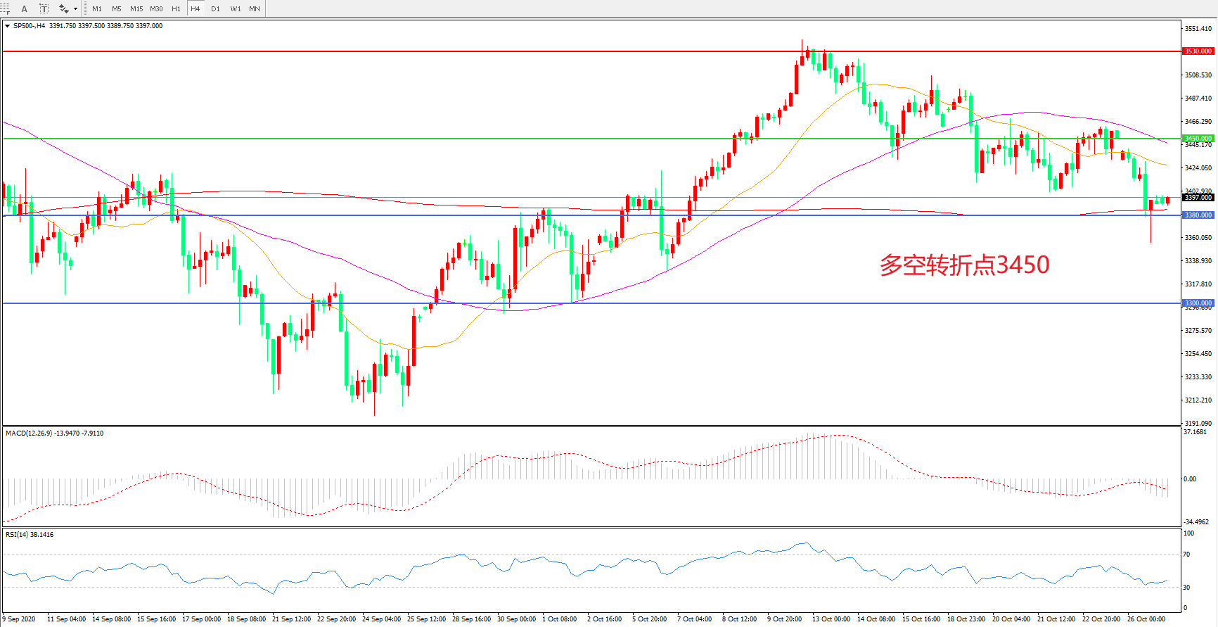 周一(10月26日),受欧美新冠疫情二次复发和美国财政刺激谈判悬而未决等影响,美股低开低走,标普最深跌2.9%,小幅反弹后收报3398.25点。大型科技股中,Facebook跌2.7%,微软跌2.8%,谷歌母公司Alphabet跌近3%。白宫经济顾问库德洛承认佩洛西列出的大量议题无法得到总统特朗普的认可,大选前达成刺激协议的希望已经十分渺茫。