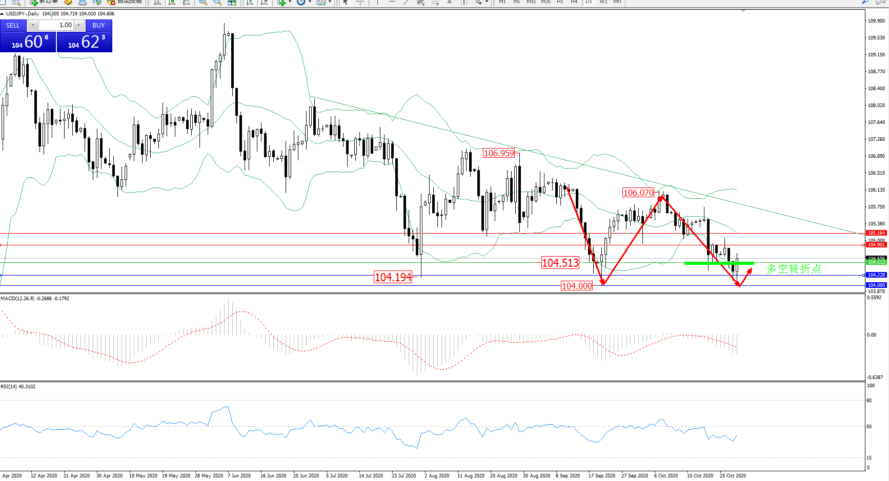 美元兑日元上涨0.328至104.61;日本央行维持政策不变后在欧洲早盘跌至104.03,随后有所反弹。欧美疫情恶化令避险日元受益,尽管日本央行行长黑田东彦表示,如有需要,将延长针对疫情提出的特别计划。但并未过多提及未来政策宽松计划,这令日元下行空间受限。不过美国整体向好GDP数据和初请失业数据令美元保持强势,最大经济体不会采取封锁行动也令日元有所回落。日本首相菅义伟定于下周宣布新一轮应对新冠疫情经济冲击的刺激计划。日本执政党自由民主党一些议员先前呼吁出台总额10万亿日元的新刺激计划。新刺激计划可能延续对企业的补贴,以帮助企业缓解资金压力、避免裁员;还可能继续为国内旅游提供折扣直至明年1月,以促进国内游、帮助旅游业渡过难关。