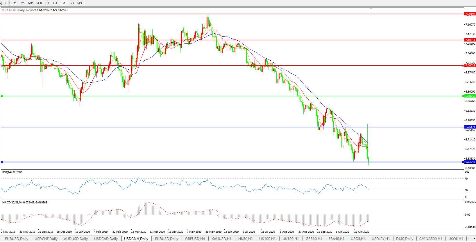 美元兑人民币USDCNH 日线图: