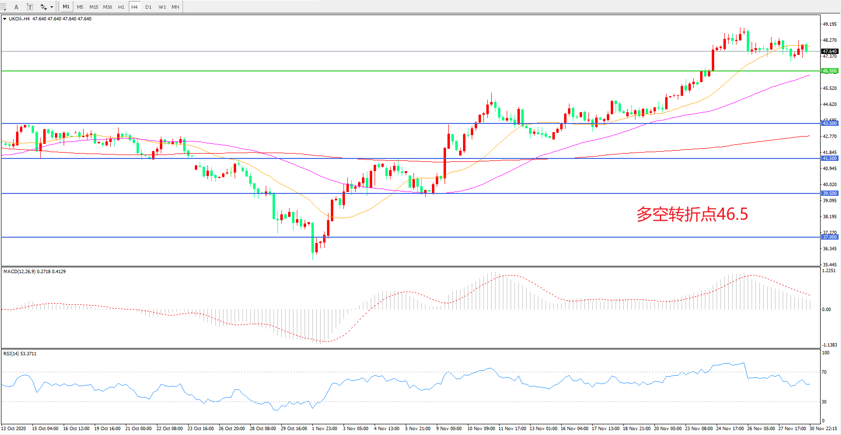 交易策略:  在46.50之上看涨,目标50.00      53.00