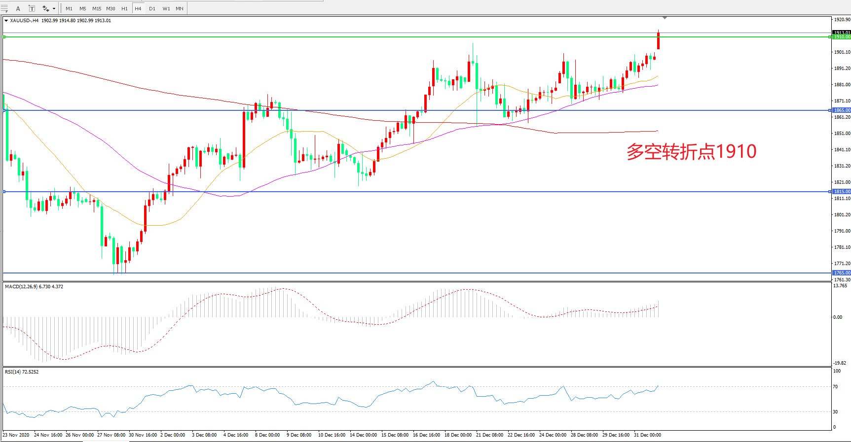 交易策略:在1910.00之上看涨,目标1950.00   1980.00