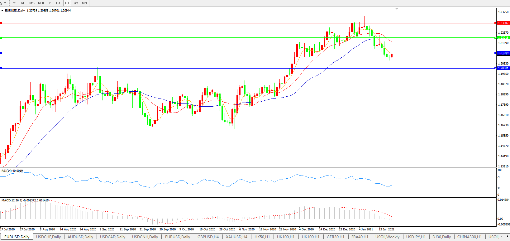 交易策略:1.2200下方看跌,目标1.2100、1.2000
