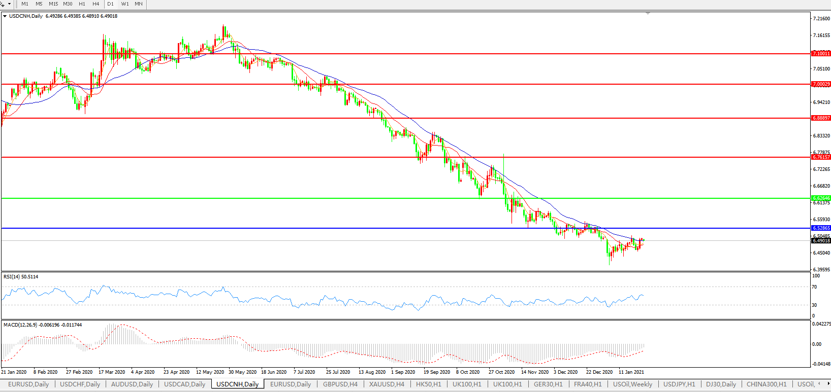 交易策略: 在6.6265之下,看跌,目标价位为6.5286,然后为6.3500。