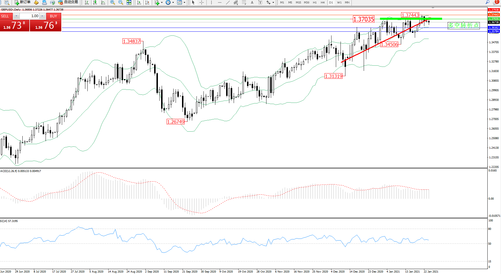 交易策略:1.37035下方看跌,目标1.36162、1.35784