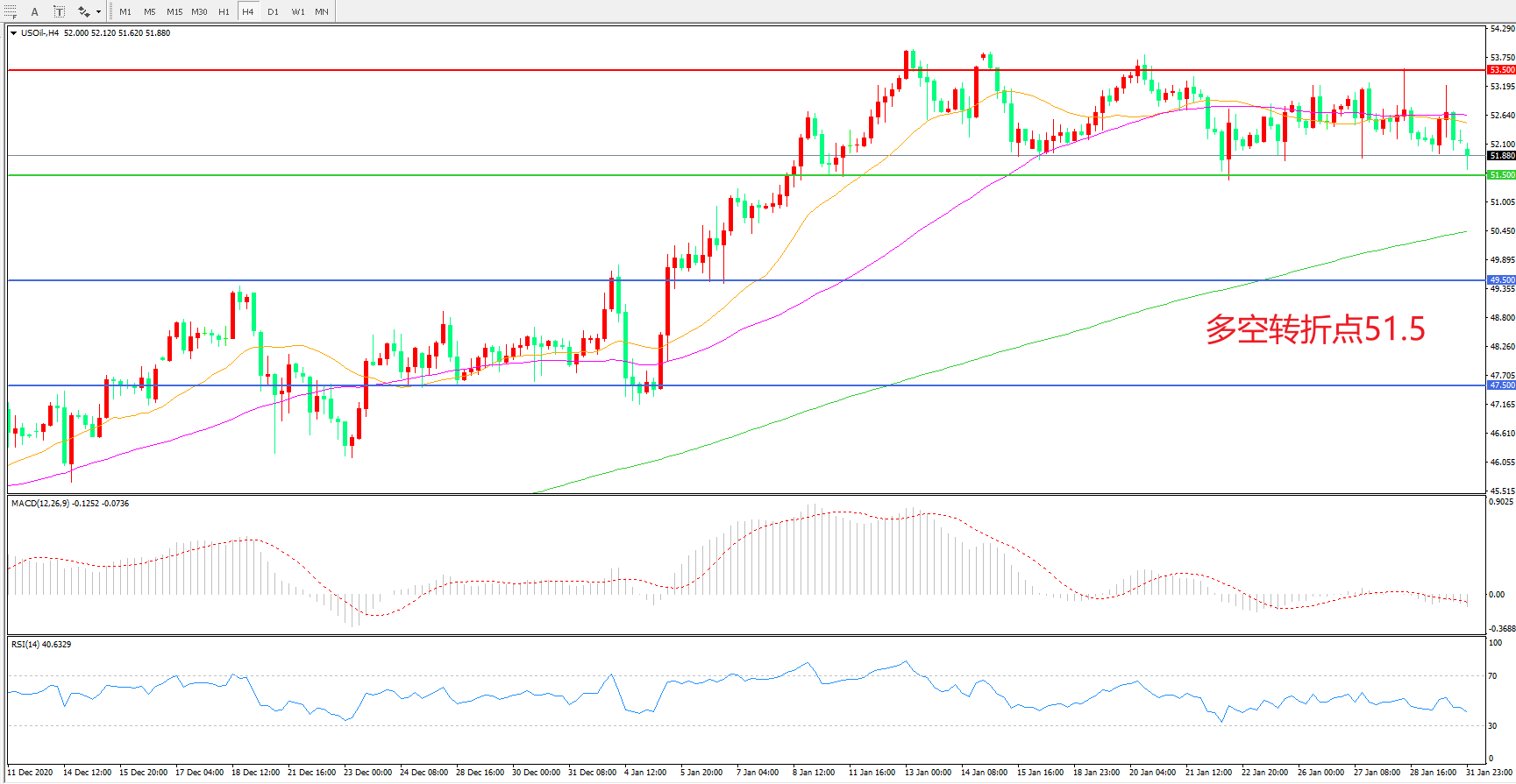 交易策略:在51.50之上看涨,目标53.50 57.00
