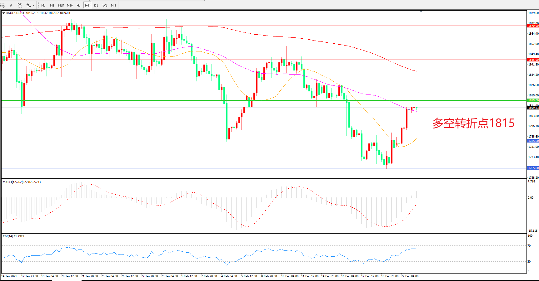备选策略:在1815.00之上看涨,目标1845.00    1870.00