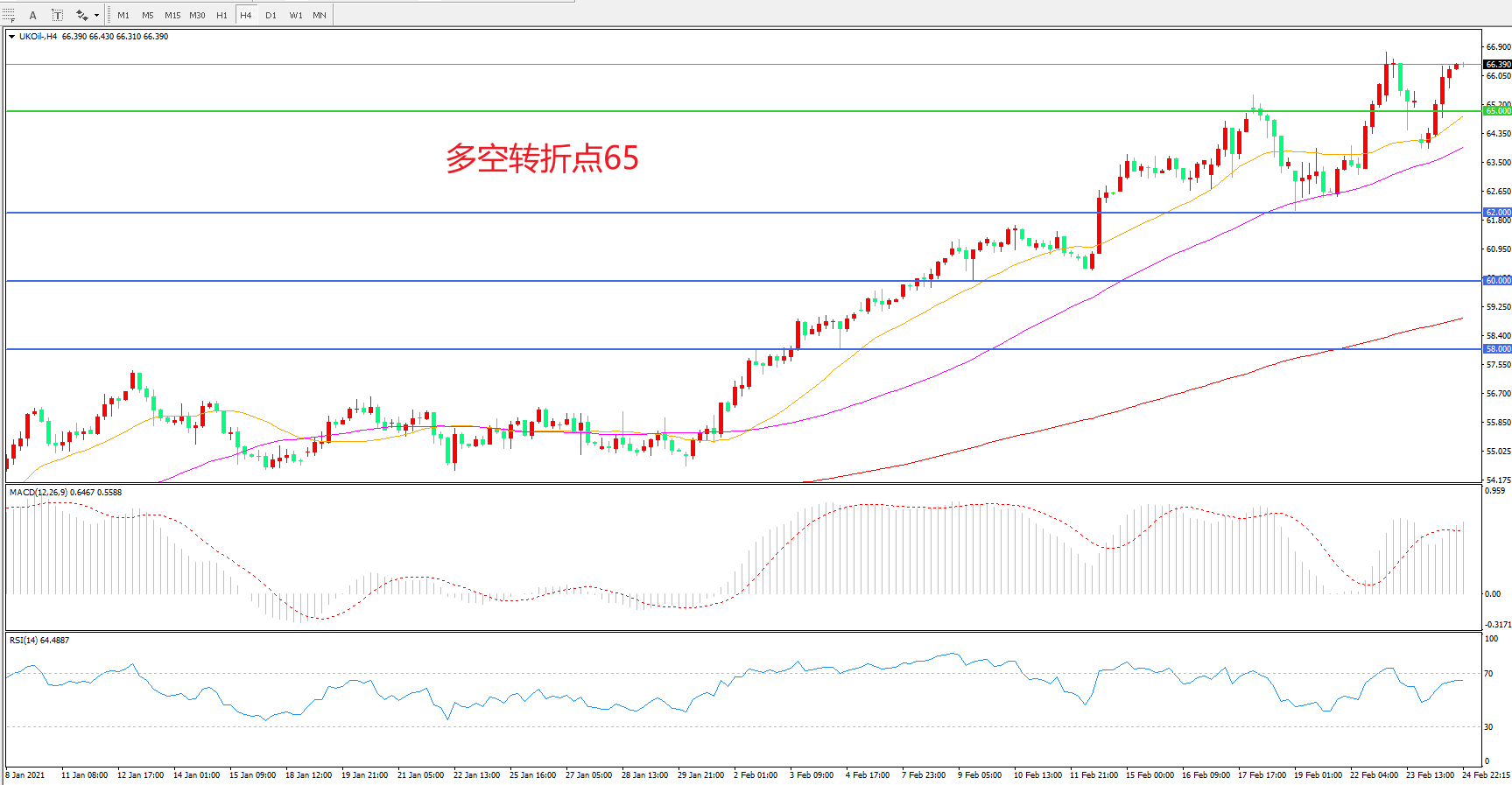 周三(2月24日),在OPEC+3月会议即将召开之际,市场对于油市的乐观情绪继续蔓延,布伦特原油延续强势表现,大幅拉升后收报66.39美元/桶。随着美国得州的交通逐渐恢复正常,供应端趋紧和需求恢复都有助于短期内提升油价,但需要注意的是,年初以来国际油价已飙涨超26%,获利回吐可能会使油价经历小幅回调。