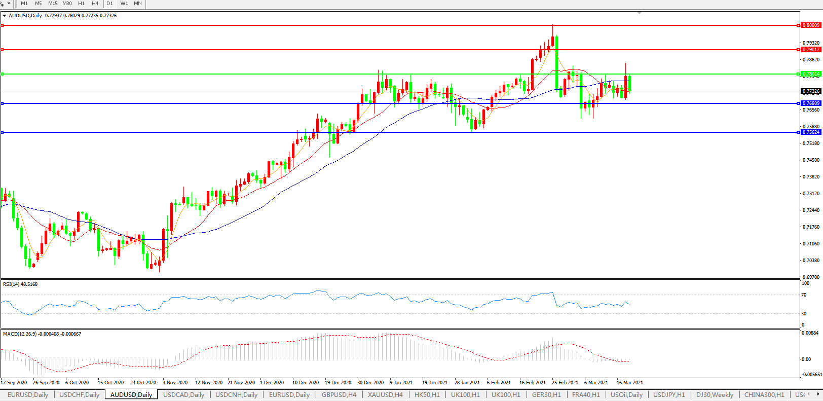 备选策略:0.7800上方看涨,目标0.7900、0.8000