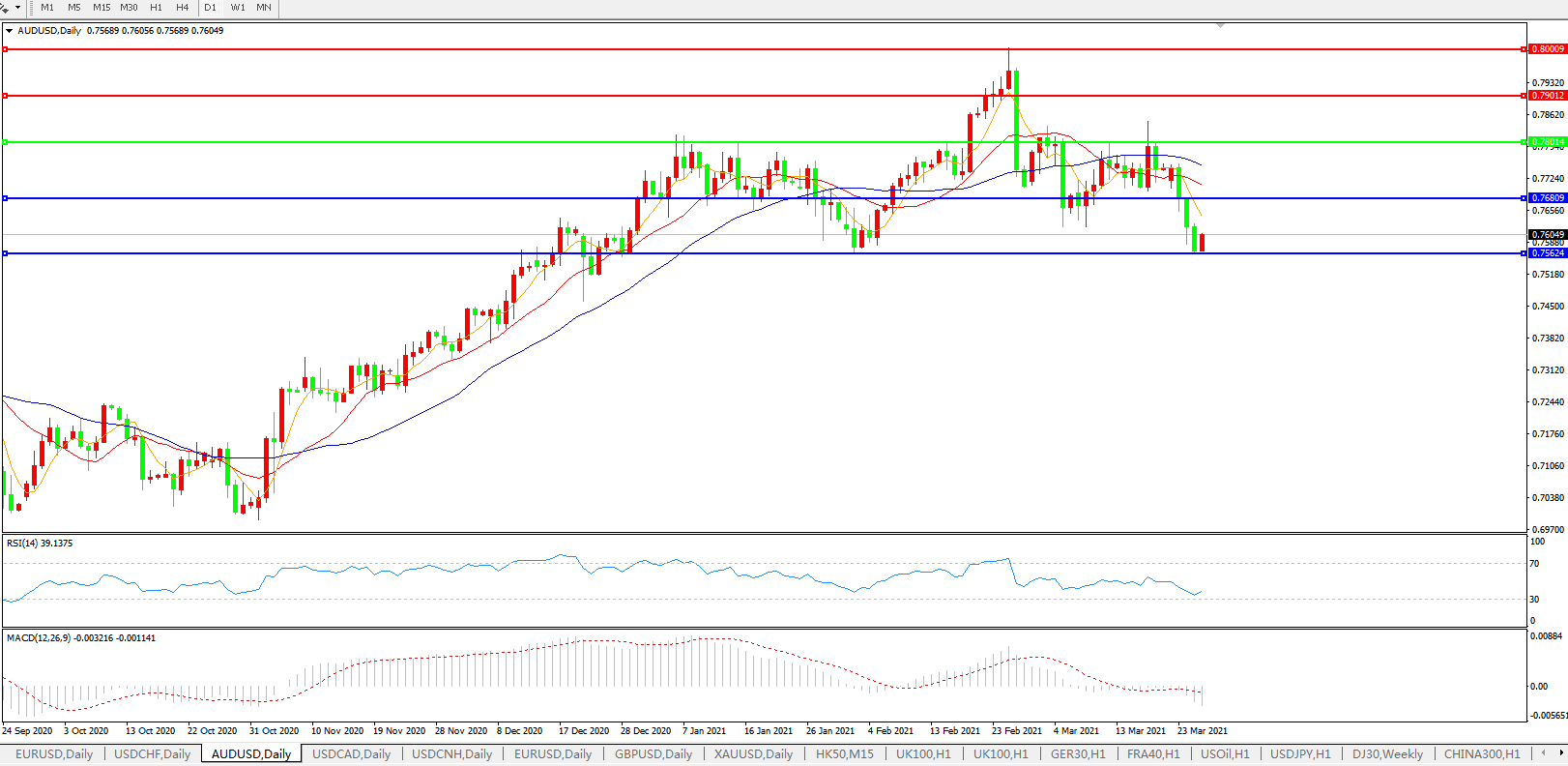 西太平洋银行表示,中期而言,由于全球同步从疫情中复苏,澳元兑美元上行目标仍指向0.79及以上水平,相对于股市和大宗商品市场的动荡,本周澳元的跌幅似乎很大,部分疲软可能是纽元的附带冲击,纽元在10国集团中表现最为疲软,此外澳元的下滑可能主要是由于其作为美元的高风险货币替代品的地位,本周美元指数进入了更高的区间;留职津贴将于下周到期,很多人都在关注它对就业的影响,零时工作的工人仍比疫情大流行前的水平高出5万人,但总裁员人数可能会更高;技术面来看,澳元兑美元处于重要的关口,在2月2日低点0.7564和0.7370/75附近的200日移动均线之间没有显著支撑,但如果美元指数暂停涨势,澳元兑美元应该能够在0.7600附近构筑底部,二季度末目标仍为0.7900。
