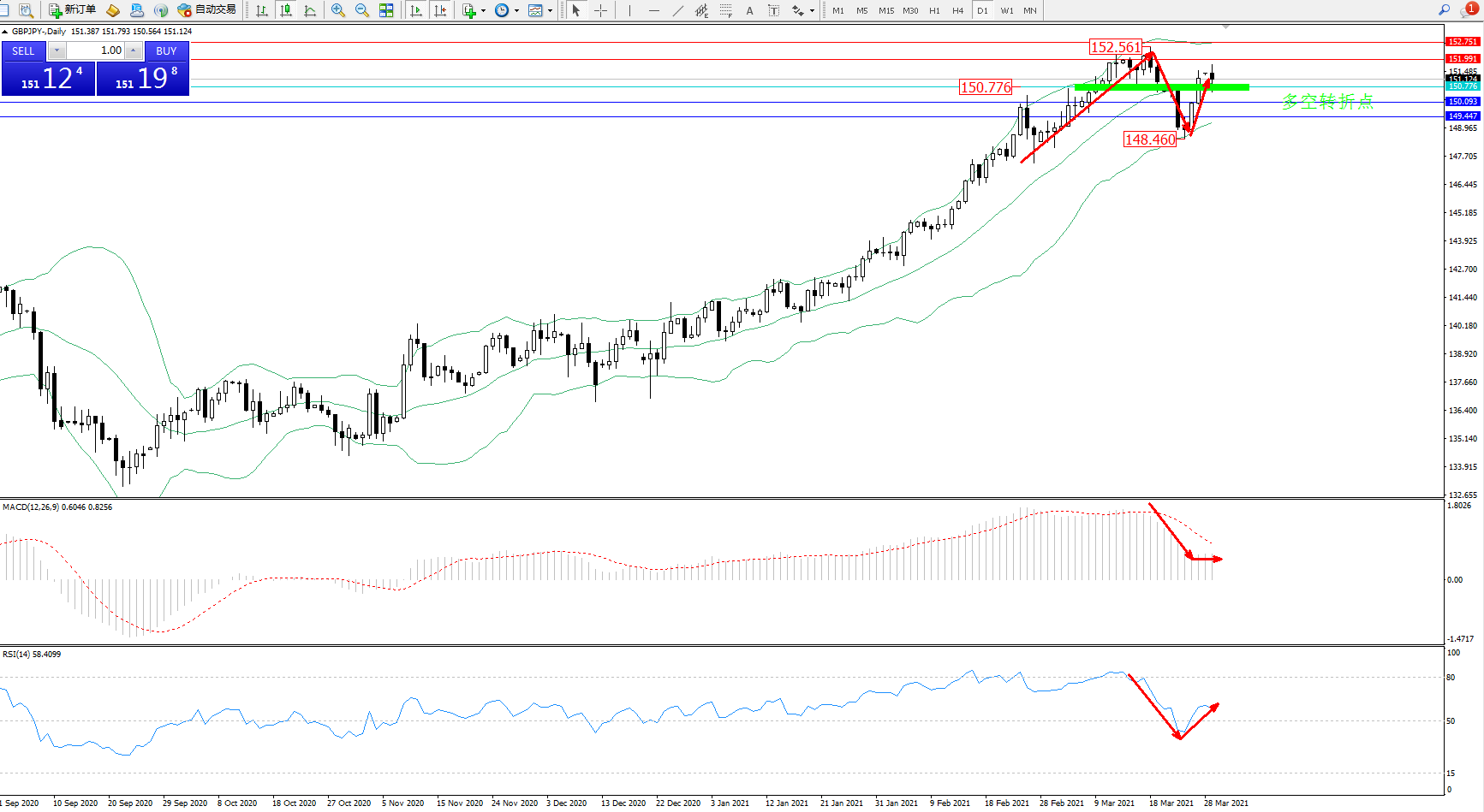 交易策略:150.776上方看涨,目标151.991、152.751