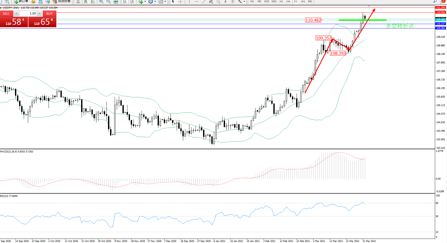 美元兑日圆持续拉升至110.584附近震荡,在美国受疫情影响趋于淡出的前景下,美国经济也确实有望在全球发达经济体领先实现复苏,这之中的直接影响就是美元汇价趋于走强。虽然美元指数目前仍相当一年前同期有6%的相对跌幅,但是已经明显地脱离了年初的低谷,乐观经济预估也令避免日元遭受抛压,从而,在一季度最后一个交易日,美元兑日元汇价触及了一年多高位。日本央行委员Noguchi:过去对货币政策一直持批评态度。当前的政策阻止了物价下跌的趋势。继续宽松政策以达到2%的目标至关重要。将在日后考虑是否应降息。日本央行是否使用宽松政策将是在经济大震荡时需要做出的决定。为日本央行需要放松政策的情况准备各种选择是非常重要的。通货紧缩是许多经济体面临的问题,不仅仅是日本。尽管有财政和货币政策支持,通胀仍受抑制。灵活的ETF购买是有利的。认为实现物价目标所需时间将超出预期。