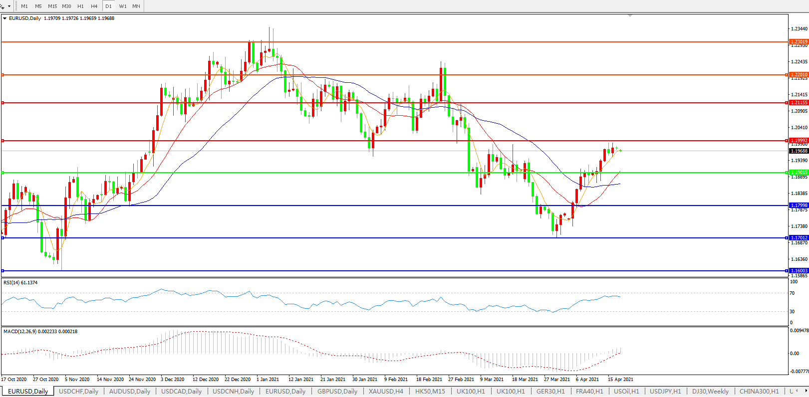 交易策略:1.1900上方看涨,目标1.2000、1.2100