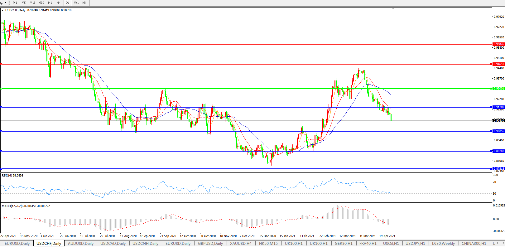 联储维持宽松基调 ,美元兑瑞郎加速下行