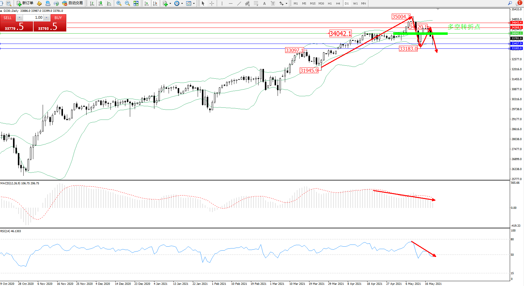 技术点评:多头动力延续布林带指标通道中上轨区间持续震荡上扬,高位抵达35004位置后遇阻回撤,多次纠结于中下轨区间维持震荡向下移动中,布林带指标呈收口平移走势良好,关注中轨附近节点,MACD指标处于多头区域高位维持震荡向下移动,RSI指标处于50均衡线附近不断震荡下移中;