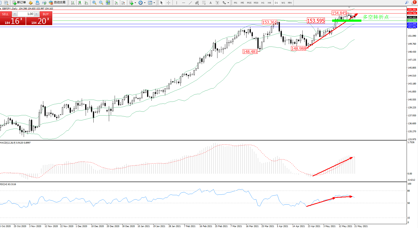 英镑兑日圆维持在154.163附近整理,英国经济增长的指标5月创下纪录高点,因许多服务企业重新开门营业,同时工厂也搭上全球经济复苏的需求热潮,导致招聘及物价都跳升。英国5月综合PMI初值为62.0,创下1998年开始发布此数据以来的新高,表现符预估,4月时为60.7。随着经济重新开放,英国正享受着前所未有的增长急喷。酒店、餐馆和其他此前关闭的消费者服务行业的需求增长最为强劲。经济活动全面回升。这指向第二季GDP大幅上升,及强劲动能将持续今年剩余时间。招聘活动接近有记录以来最强劲的水平,但企业未交货订单仍创记录最大增幅,且供应链延误情况严重恶化。