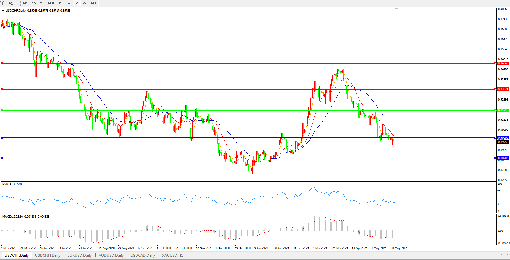 技术面简析:日线图均线发散下行,汇价大幅下行后弱势整理,MACD运行于0轴下但量能0轴开始缩量,RSI再度走弱,预计短期汇价大概率将在反弹修正后进一步下行。