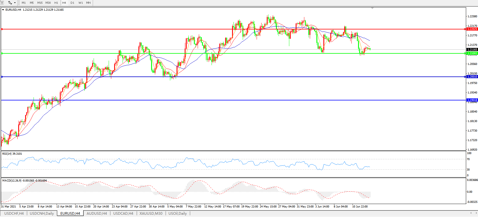 交易策略:1.2100下方看跌,目标1.2000、1.1900