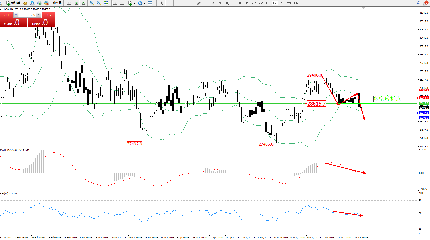 技术点评:空头动力纠结于布林带指标通道中下轨区间持续震荡平移后,短期触及中轨附近节点遇阻急速下挫,触及下轨附近节点后得到短暂支撑,空头动力下行趋势走势已然展开,布林带指标呈缓慢张口走势持续中,MACD指标处于0轴线附近弱势徘徊中,RSI指标处于50均衡线下方持续整理后反转向下移动中;