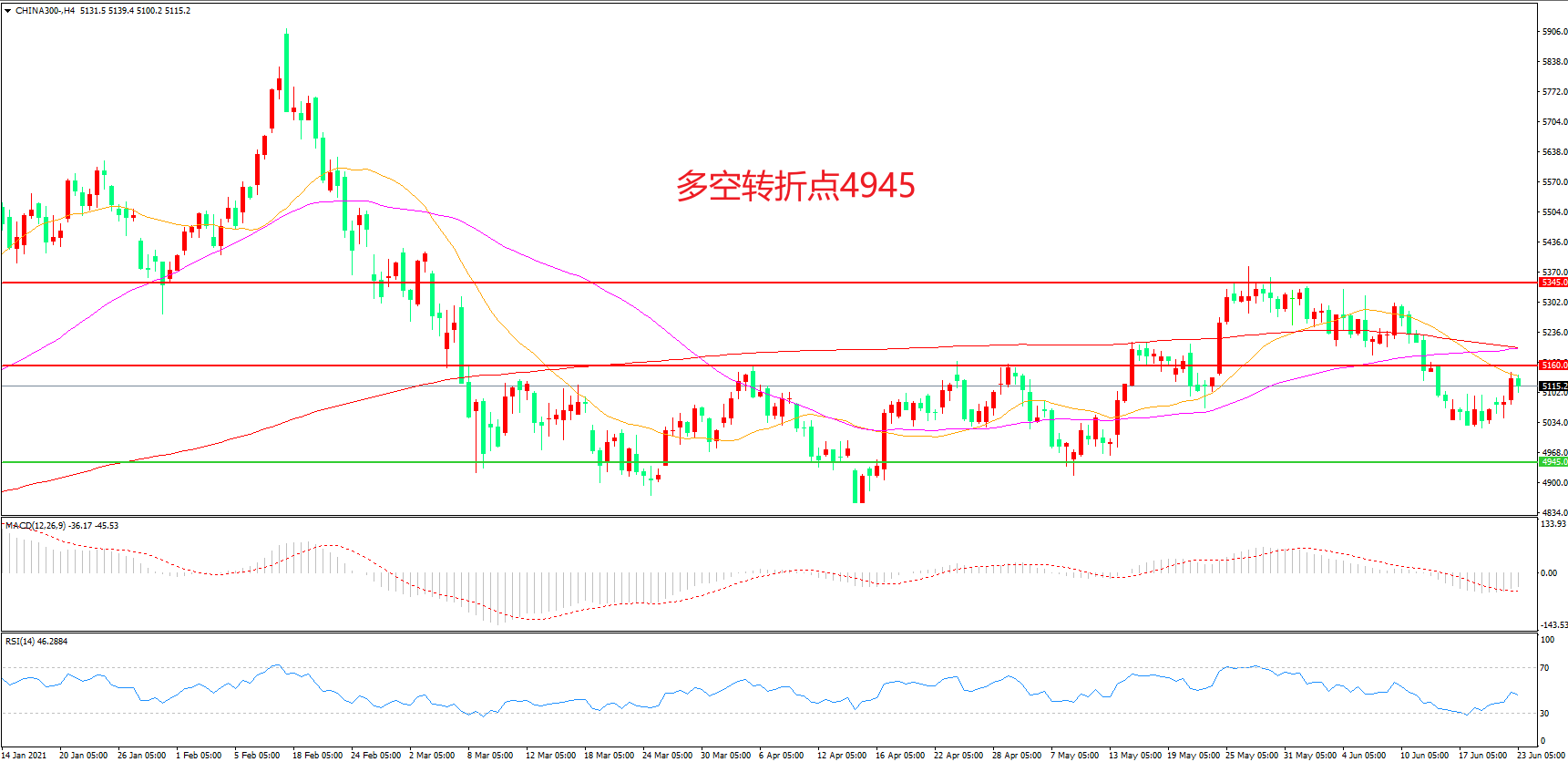 4小时图看,沪深300延续低位震荡,短线行情企稳,均线系统粘合成为上方阻力,4945成为下方支撑,MACD绿柱缩短,RSI指标走平,日内延续震荡概率较大。