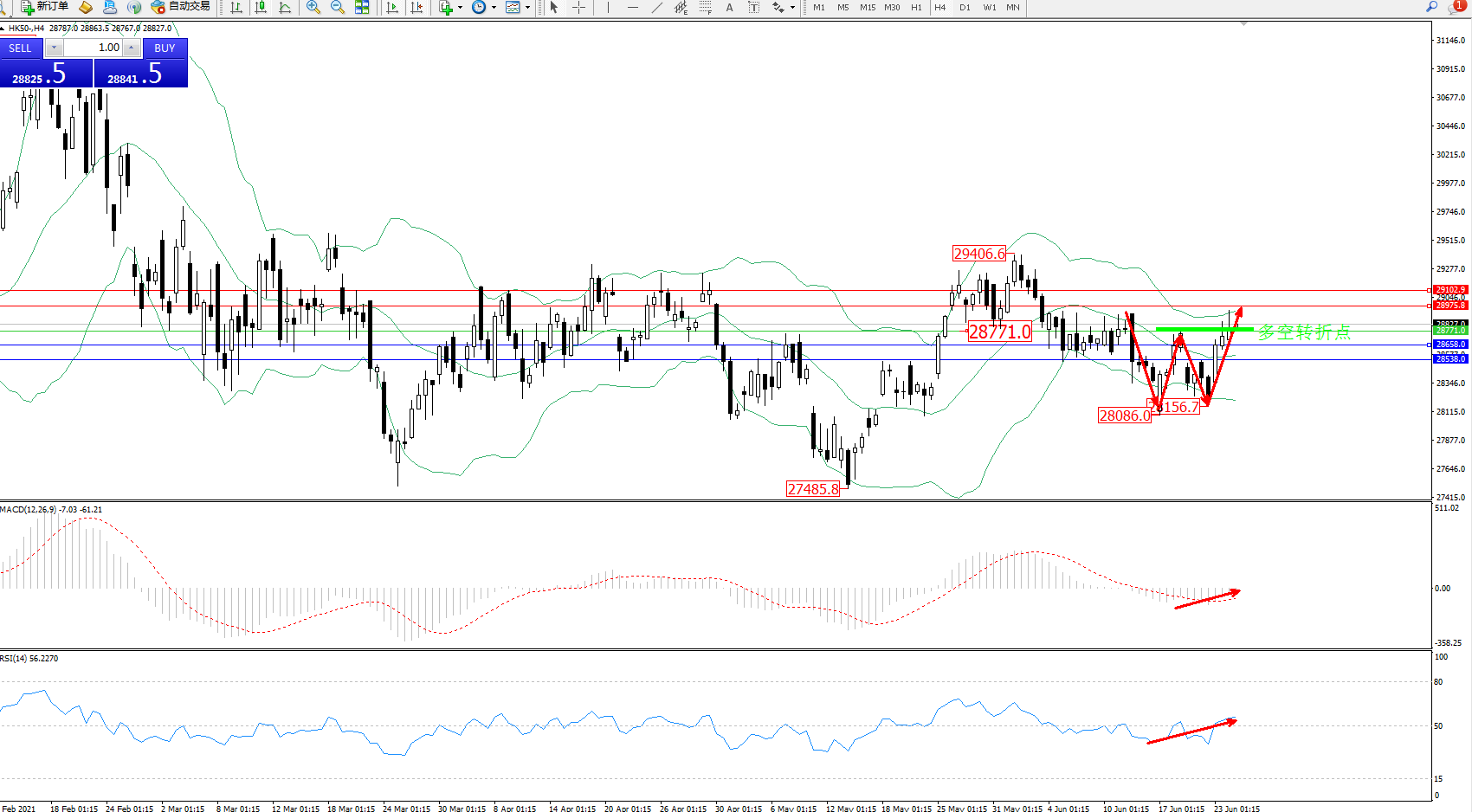 技术点评:长时间维持在布林带指标通道中下轨区间震荡后,呈W底型态巨震反转上移,触及布林带指标上轨附近节点后维持徘徊,多头动力有进一步向上回升迹象,布林带指标呈缓慢张口迹象,MACD指标处于0轴线下方空头区域维持整理后有上移迹象,RSI指标处于50均衡线附近震荡后开始徘徊上移中;