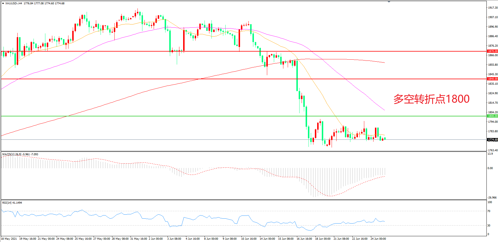 多空转折点:1800.00
