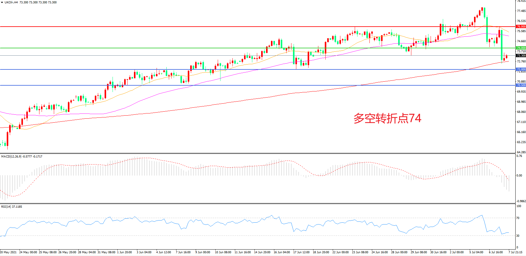多空转折点:74.00
