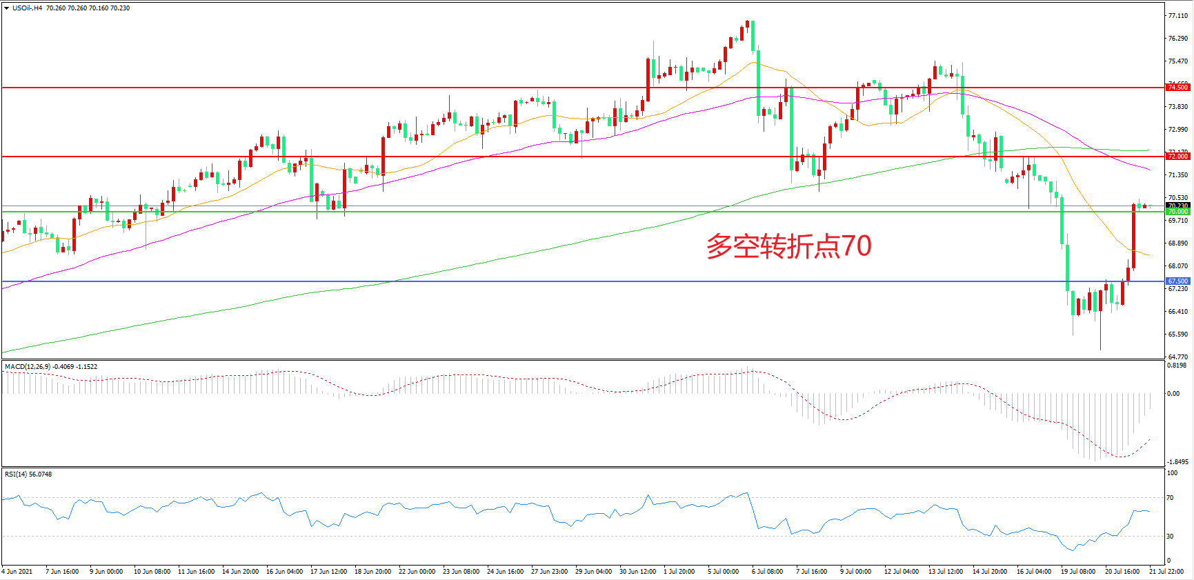 周三(7月21日),美国当周EIA原油库存意外高于预期,但库欣地区的原油库存却降至18个月最低水平,市场恐慌情绪消退, 美国WTI原油大幅拉升,收报70.21美元/桶。从短期来看,原油市场的高波动率没有结束,虽然OPEC+产油国已达成初步协议,但产油国增产势头已经势不可挡,需求端德尔塔病毒的蔓延是否会打断经济复苏成为未来市场抉择的关键。
