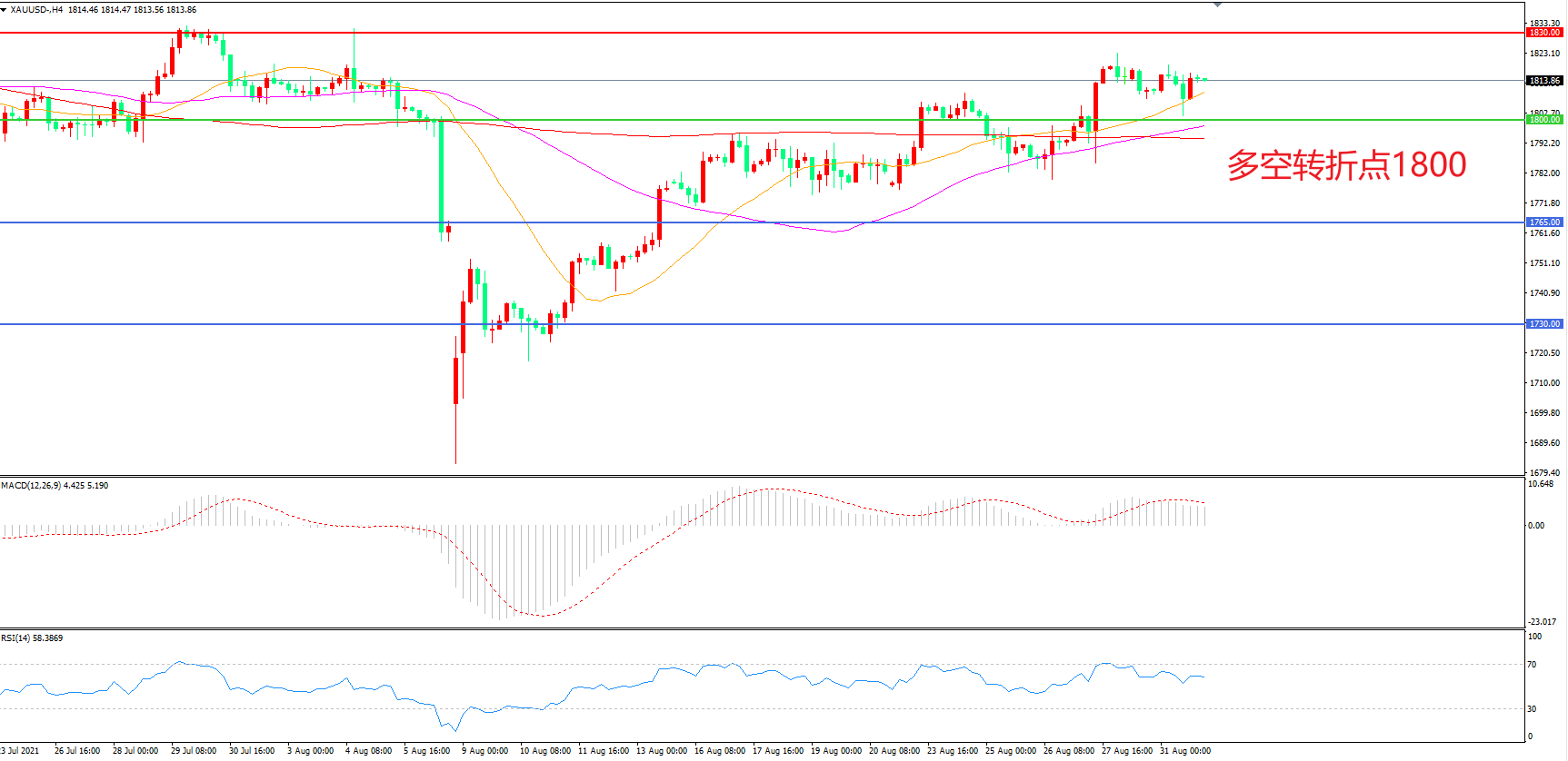 周二(8月31日),在一波巨量抛单的打压下,金价一度大幅下挫,但随着欧洲央行释放“鹰派”信号,欧元盘中涨幅扩大,美元指数跌至将近一个月来低谷,金价探底回升后收报1813.98美元/盎司。本周五,美国将公布非农就业数据,多空双方在此之前都会比较克制,目前市场预计8月份非农就业人数将增加75万人,强劲非农报告可能提升美联储收紧政策的预期,令黄金承压。