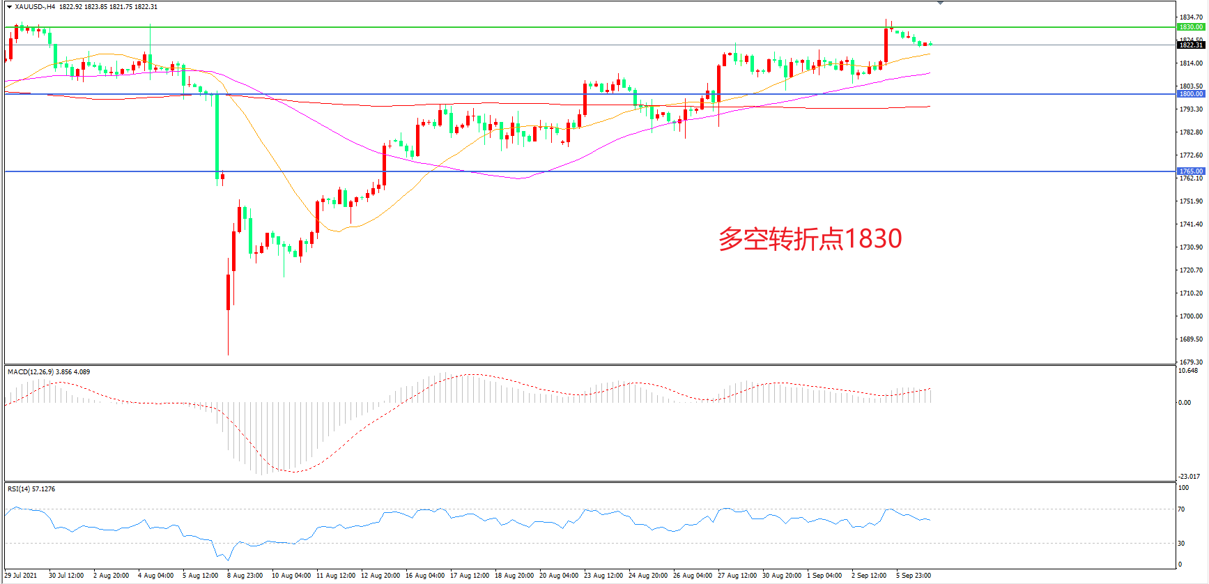 周一(9月6日),由于美国适逢劳工节假期休市,市场交投较为清淡,投资者消化美国非农就业数据远逊预期可能导致美联储推迟Taper的前景,现货黄金小幅回落,收报1822.70美元/盎司。本周,欧洲央行将举行货币政策会议,鉴于多位官员近期发表了鹰派讲话,会议的结果尤其受到关注。此外,包括纽约联储主席威廉姆斯在内的多位美联储官员也将发表讲话,如果他们的表态偏向于推迟缩债,金价将迎来新一轮涨势。