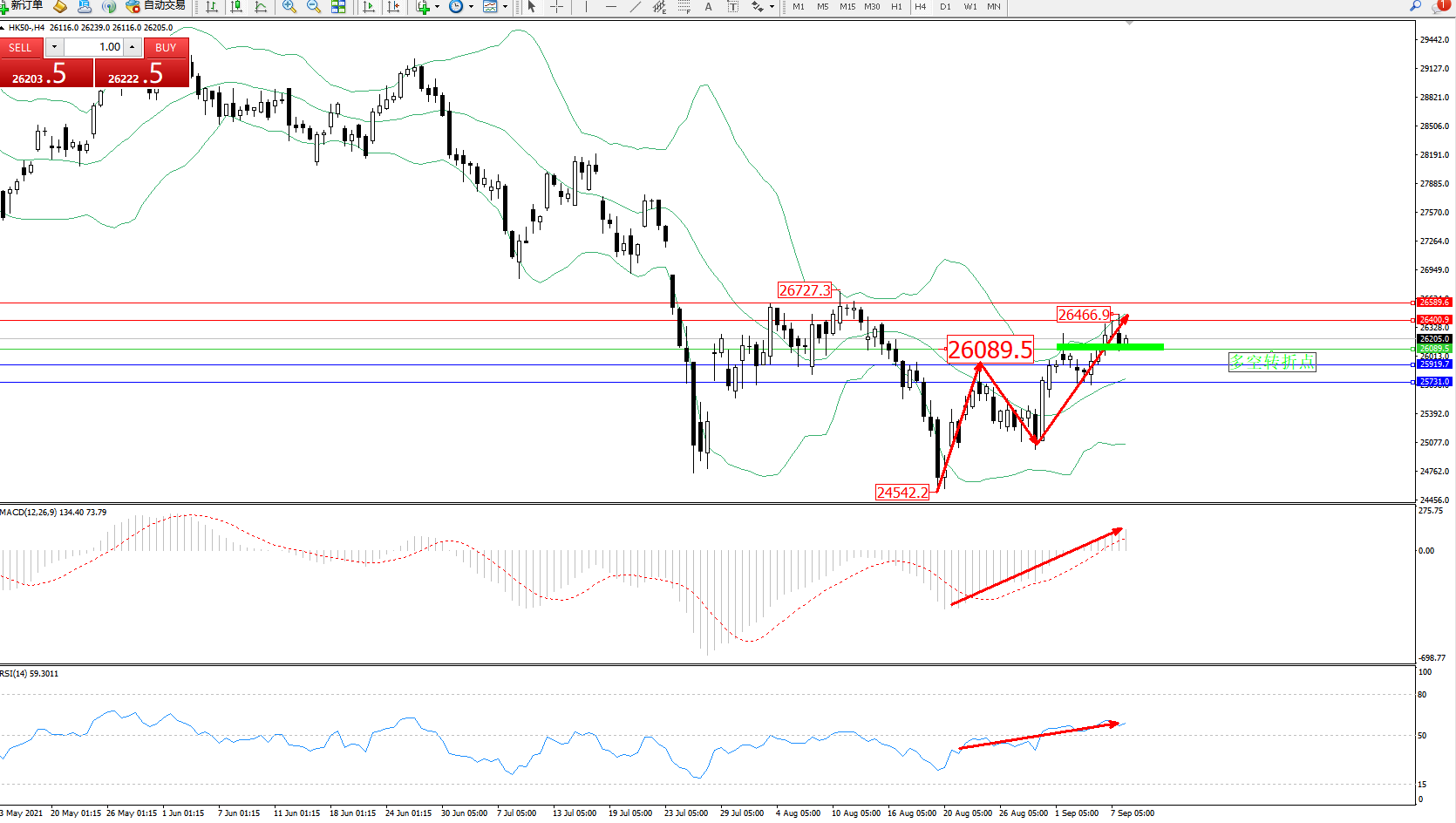 香港恒生指数9月8日(周三)收盘下跌32.7点,跌幅0.12%,报26320.93点;港股三大指数集体收跌,恒生科技指数跌0.24%报6871点。电力板块领涨,大唐新能源飙涨近16%破顶,龙源电力、新天绿色能源拉升均创历史新高;大中华地区逐步放松过境限制,濠赌股、旅游及观光股、餐饮股、航空股表现活跃,美兰空港大涨近7%;大型科技股涨跌不一,腾讯、京东涨1.8%,美团涨1.4%,快手跌2.6%,小米跌2%。今日大市成交额为1521亿港元,南下资金逆势净流入21.41亿港元。珠海和澳门之间的青茂口岸于9月8日开通,或意味内地政府最终将取消签证限制,同时减少访澳旅客过境时间。一旦内地、澳门和香港达到足够高的疫苗接种率,预计边境措施将回复正常,澳门赌股EBITDA将迅速复苏。花旗继续看好金沙中国、澳博和银娱,预计其各自新项目将有助提升市占率。