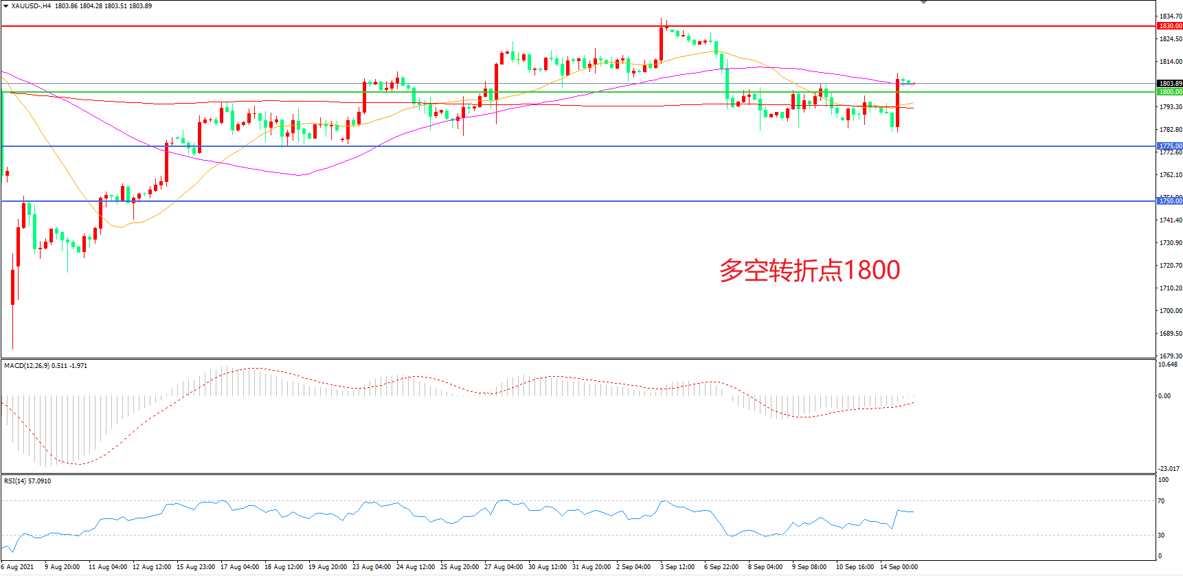 周二(9月10日), 美国8月CPI与核心CPI环比增速均低于预期,低迷的数据使得美联储有理由推迟宣布缩减购债规模时点,美元指数承压下跌,现货黄金大幅走高,收报1804.01美元/盎司。美国8月CPI将为下周美联储政策会议定下基调,美联储下周二和周三开会,外界普遍预计将讨论缩减其债券购买计划,但要到今年晚些时候才会正式宣布其计划。