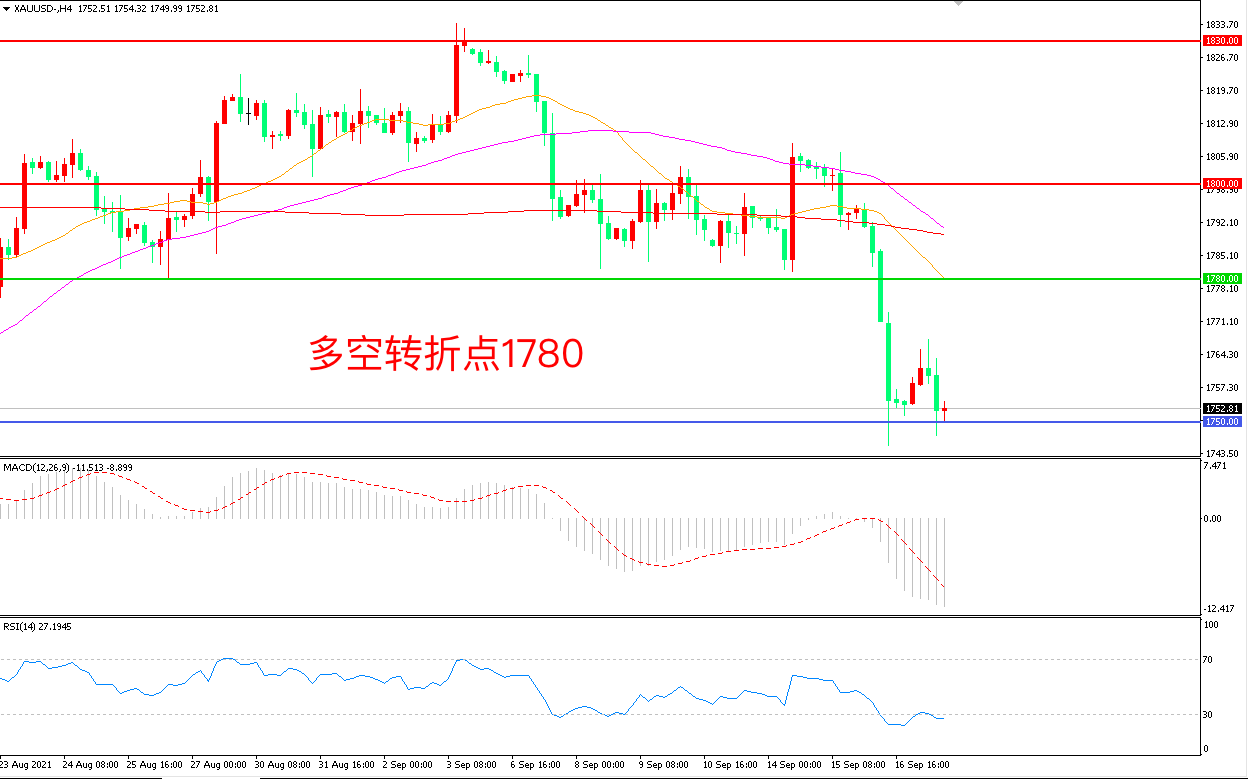 交易策略:在1780.00之下看跌,目标1750.00            1720.00