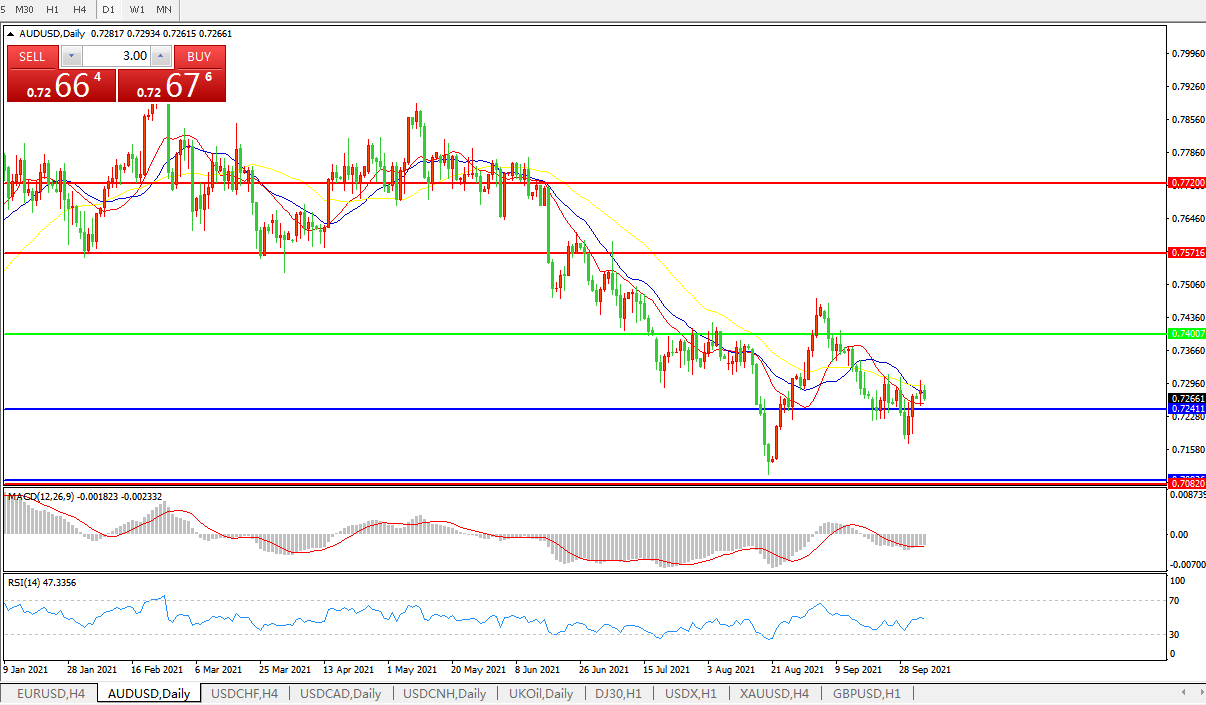 交易策略:0.7400下方看跌,目标0.7240、0.7080