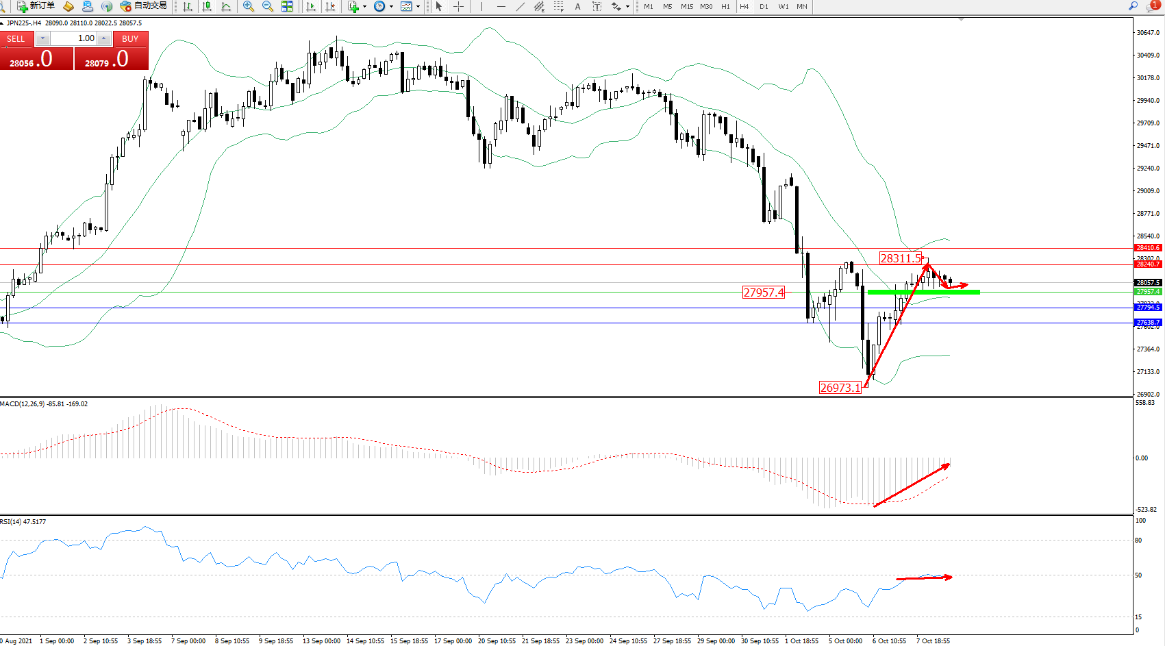 技术点评:低位多头动力震荡上移至28311位置后开始短暂整理,多头拉升动力开始遇阻徘徊,布林带指标呈收口走势持续平移中,MACD指标处于空头区域低位震荡上移后开始整理平移,RSI指标处于50均衡线附近弱势徘徊中;