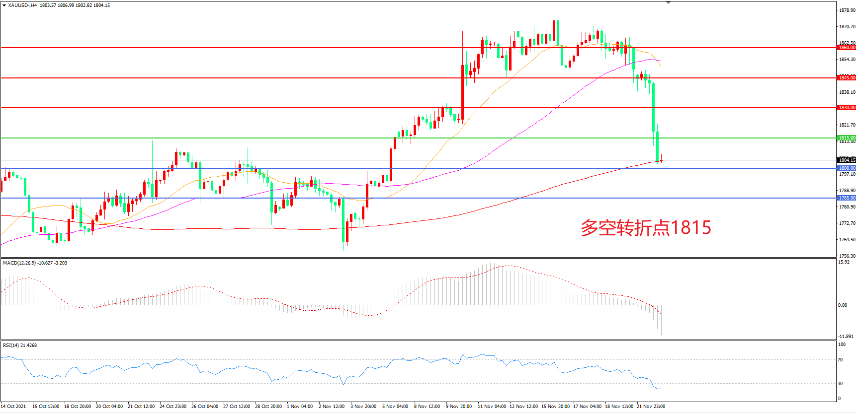 交易策略:在1815.00之下看跌,目标1800.00 1785.00