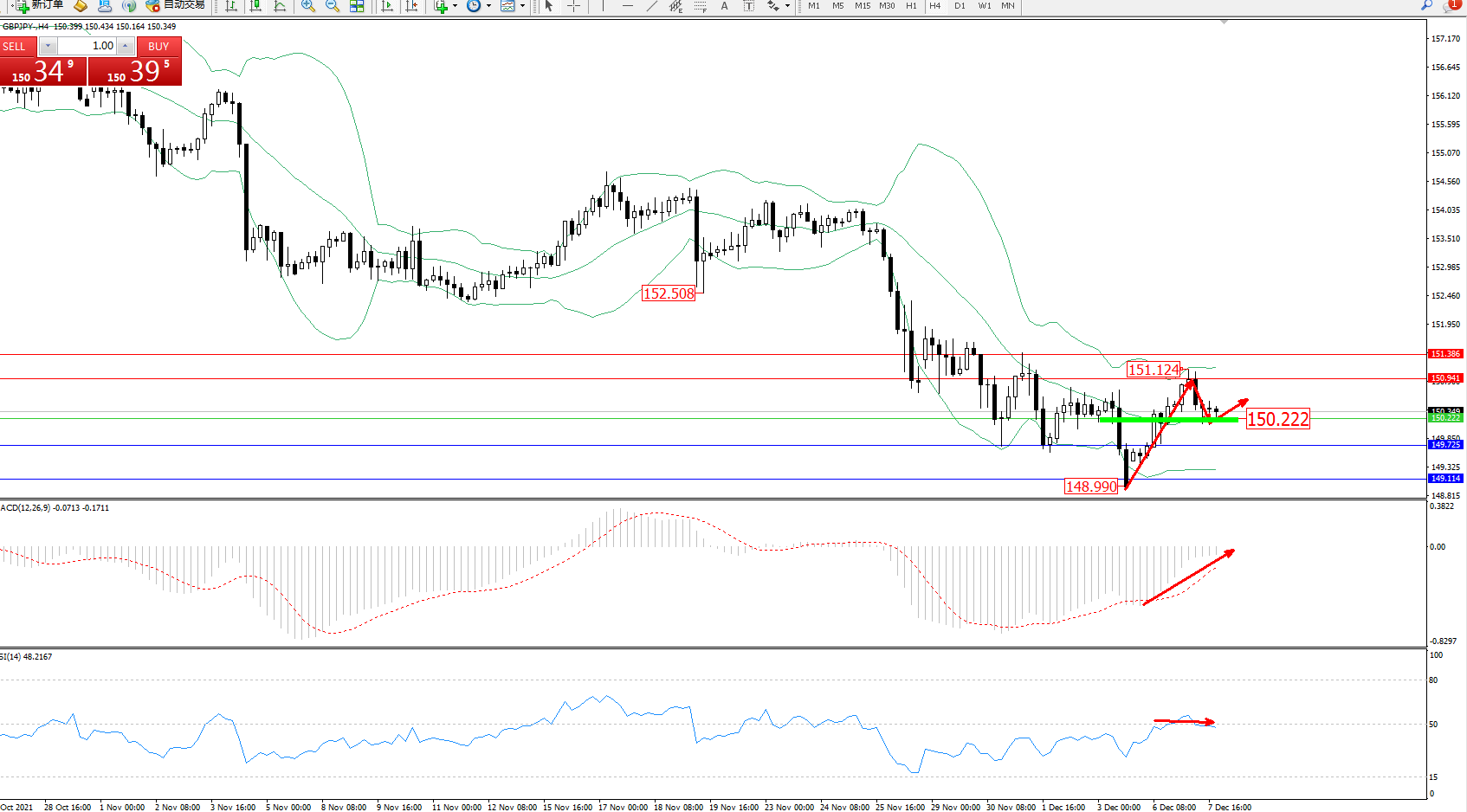 技术点评:空头动力延续布林带指标中下轨区间持续下行,低位抵达148.990位置后得到支撑反转震荡上扬,纠结于布林带指标中上轨区间震荡,短期关注中轨附近节点,多头动力有急速向上移动迹象,布林带指标呈收口走势后开始平移,MACD指标处于空头区域低位震荡缓慢回升中,RSI指标处于50均衡线附近弱势徘徊中;