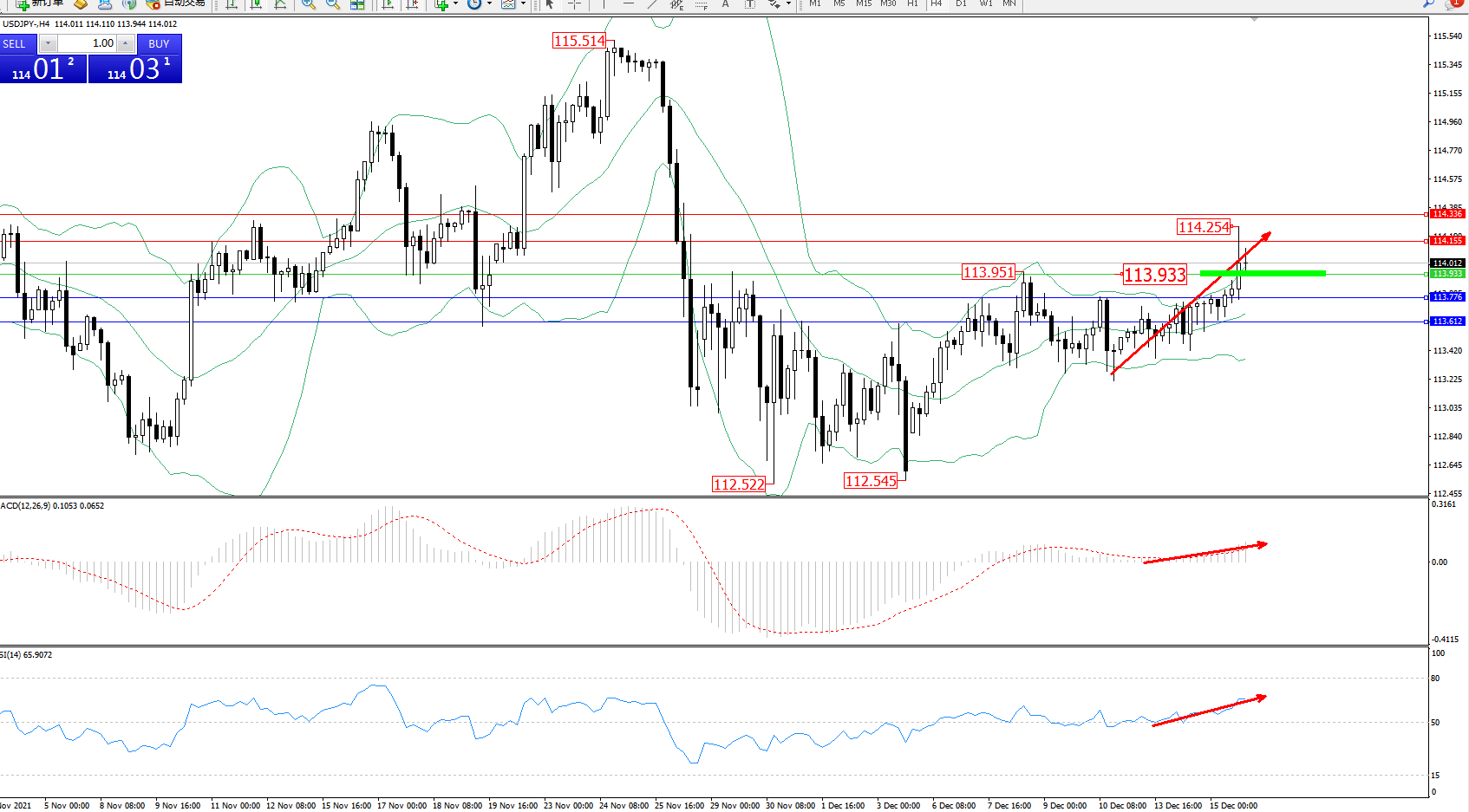 技术点评:多头动力延续布林带指标通道中上轨区间持续震荡上扬,高位突破布林带指标上轨至114.254位置后回撤整理,多头动力有进一步向上拉升态势,布林带指标呈缓慢张口走势持续中,MACD指标处于0轴线上方弱势徘徊,RSI指标处于多头区域维持平缓向上移动中;