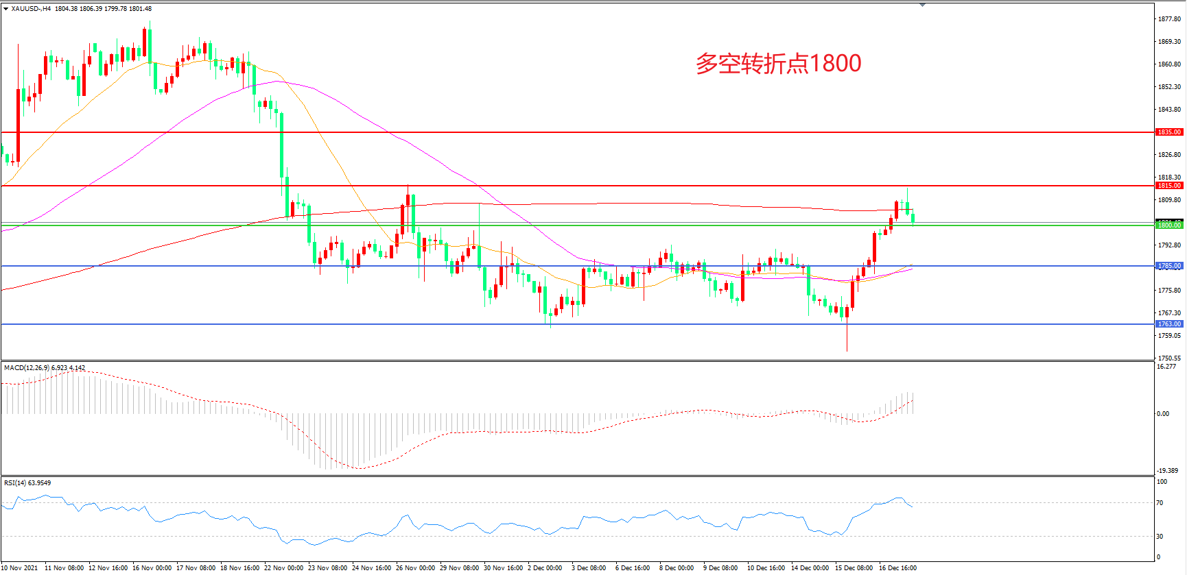 交易策略:在1800.00之上看涨,目标1815.00       1835.00