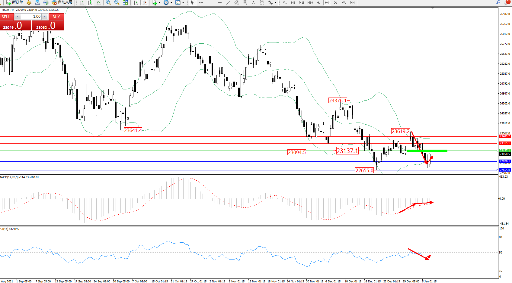 香港恒生指数1月6日(周四)收盘上涨165.61点,涨幅0.72%,报23072.86点;港股三大指数尾盘拉升,权重科技股回暖明显,致恒生科技指数涨1.37%,此前连续下跌的科技股集体反弹,阿里巴巴涨5.68%,京东涨超4%,美团涨3.64%,百度涨2%小米、腾讯涨超1%,香港收紧防疫措施,中医药股再度活跃,香港本地股、餐饮股等走势萎靡,电力、燃气等能源板块跌幅靠前。港特区行政长官昨午(5日)因应疫情宣布一系列收紧社交距离措施。虽然短期内对香港零售收租企业不利,但该行相信市场已经消化新冠疫情重燃影响的可能性因素,在短期内料香港与内地恢复通关进程会稍为延迟,但该行亦估计香港与内地在北京冬奥及两会举行后在今年第二季重新“通关”。