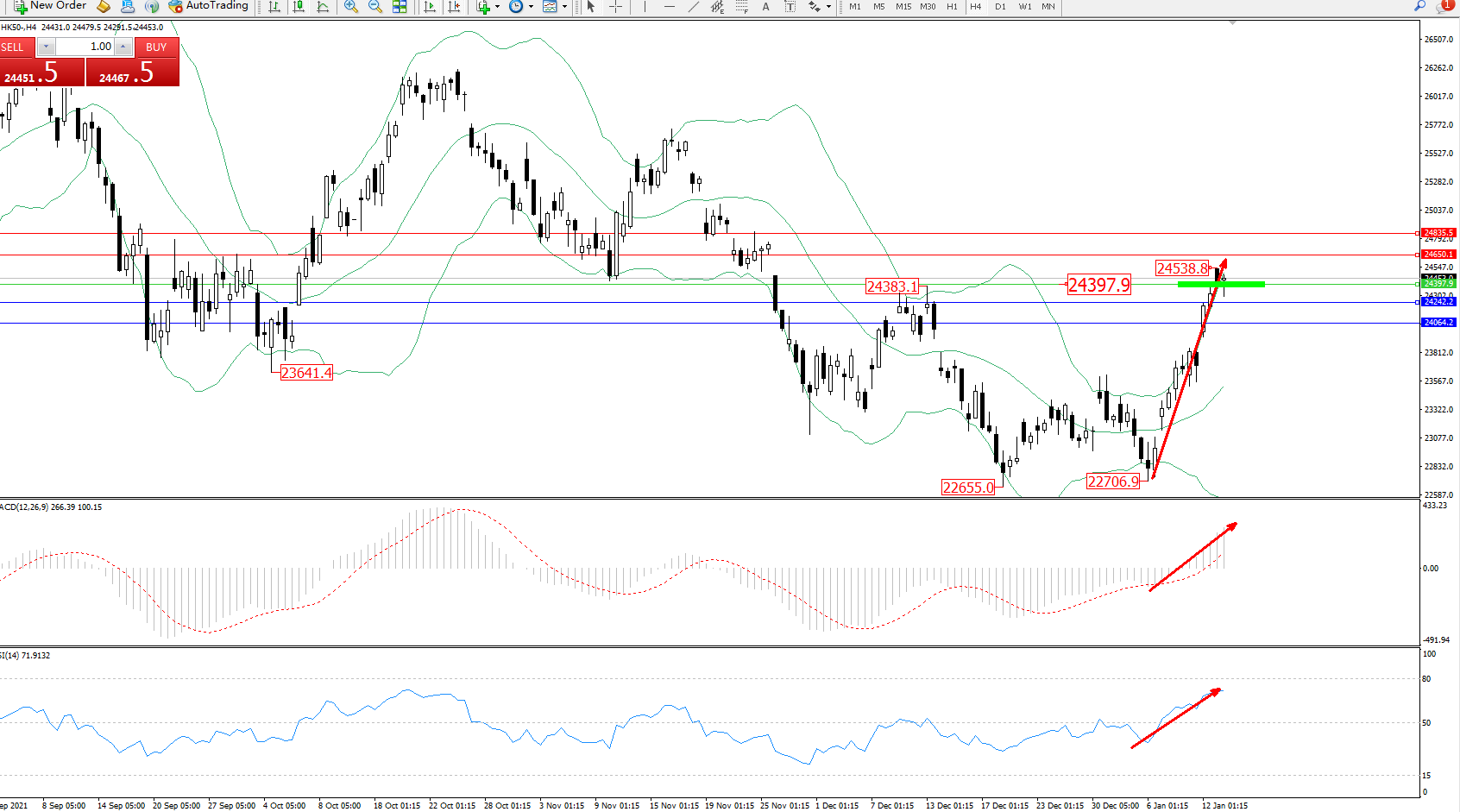 香港恒生指数1月13日(周四)收盘上涨27.6点,涨幅0.11%,报24429.77点;港股指数走势大肆分化,科技股低迷,致恒生科技指数跌1.75%,大型科技股京东、网易跌超3%,百度、腾讯、小米等明星股齐跌;恒大概念股再度下挫,恒大汽车跌幅超14%,南下资金净流入23.54亿港元,大市成交额为1363亿港元。澳门新型冠状病毒感染应变协调中心公布,因应疫情防控需要,卫生局根据《传染病防治法》规定,自1月14日零时起,所有由内地经机场以外口岸入境者,须持有采样日后48小时内符合卫生当局要求的新型冠状病毒核酸检测阴性结果证明,未能出示符合要求证明的非澳门居民可被拒绝入境;对离境人士维持出示7天内核酸检测阴性结果证明的要求。