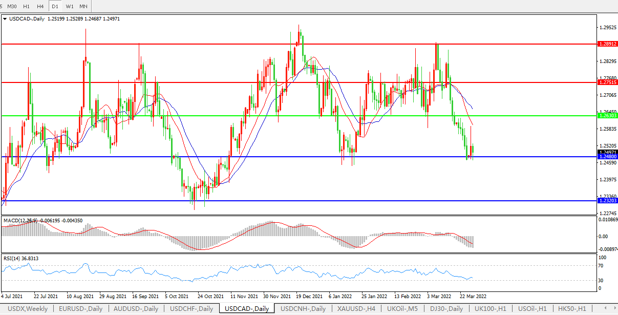 美元兑加元USDCAD 日线图: