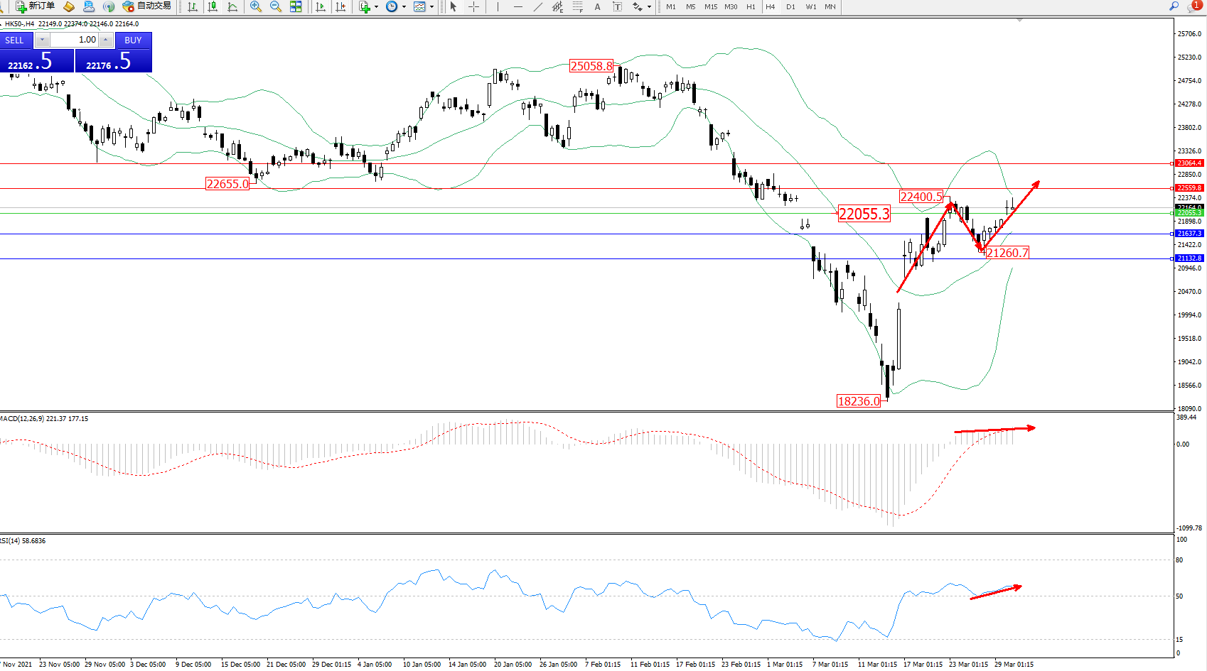 香港恒生指数3月30日(周三)收盘上涨304.4点,涨幅1.39%,报22232.03点;俄乌战事缓和,全球金融市场普遍上扬。港股继续反弹,恒生科技指数涨0.34%,三者均录得连续3日反弹。科技股多数冲高回落,快手收跌超6%,曾一度大涨逾8%,美团、腾讯、百度小幅飘红,美团曾涨超3%;香港在第五波疫情采取严厉防疫措施,行政长官林郑月娥表示,当局在第五波疫情刚开始时就对9个国家采取“禁飞令”,明白在香港有个人及企业感到焦虑,有金融机构及国际传媒亦关注香港在疫情下是否仍可维持到香港国际地位和国际金融中心角色。林郑承认,近月香港有人才流失是一个不争事实,强调政府是基于在生命至上的大前提下,实施防疫措施,当局近日已对防疫措施作出理顺工作。没有人比她更重视香港国际地位,相信香港可保持传统优势,疫情后会有更好发展。