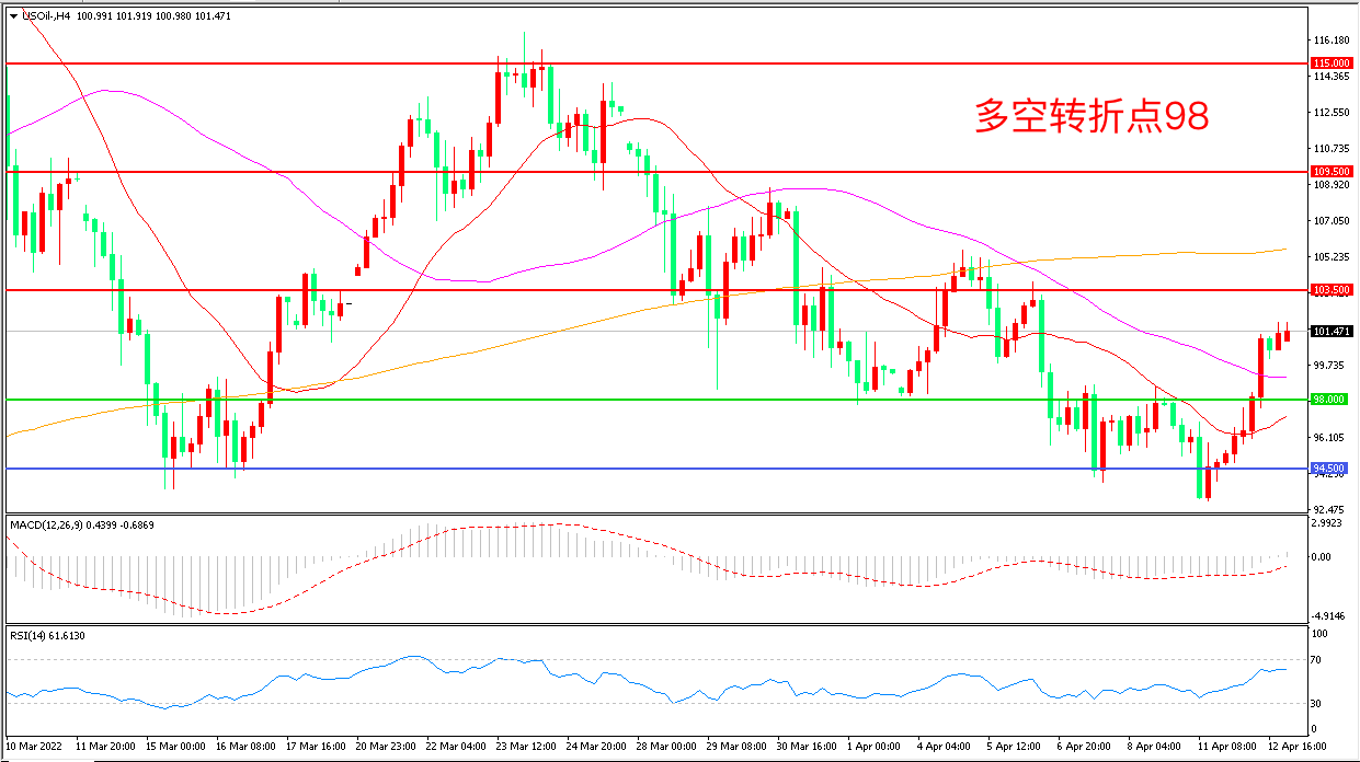 交易策略:在98.00之上看涨,目标103.50 109.00